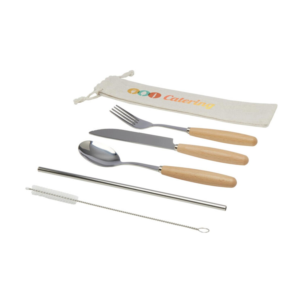 Dzięki spersonalizowanemu logo lub nadrukowi zestaw staje się perfekcyjnym nośnikiem identyfikacji wizualnej. Świetnie sprawdzi się jako upominek reklamowy podczas targów branżowych branży gastronomicznej, hotelarskiej czy eventowej. Równie dobrze możesz wykorzystać go w promocji firm z segmentu eko-food, kateringów dietetycznych, biur podróży czy sklepów zero waste – wszędzie tam, gdzie liczy się praktyczność i dbałość o środowisko. Drugi raz podkreślamy nazwę: 5-częściowy zestaw sztućców ze stali nierdzewnej i z drewna bukowego Root robi wrażenie zarówno estetyką, jak i trwałością.