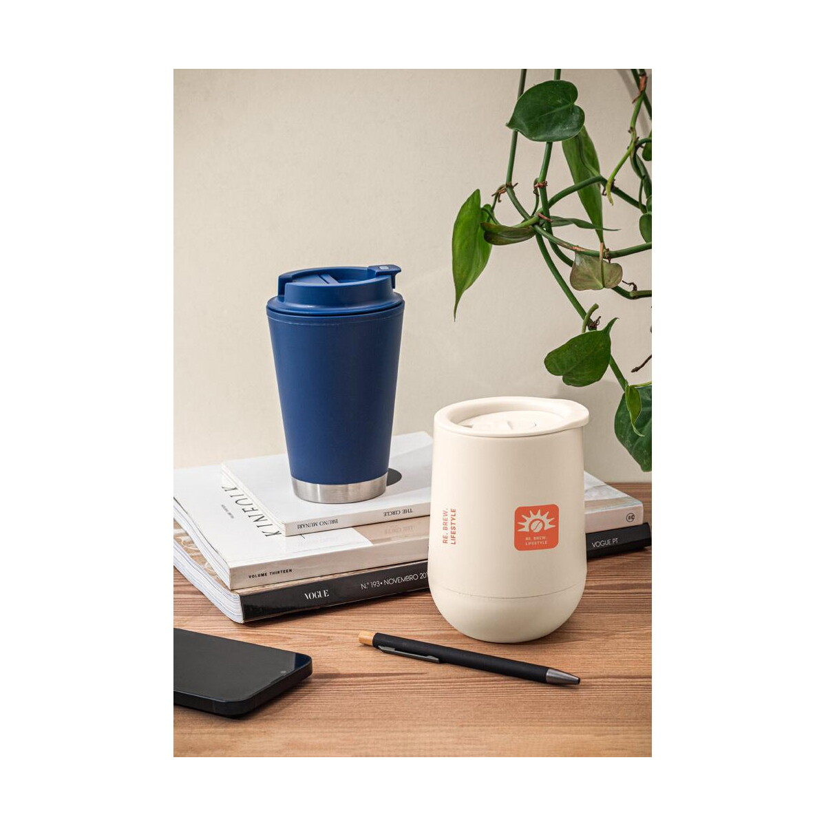Model występuje w trzech uniwersalnych kolorach – czarnym, białym matowym i granatowym – dzięki czemu łatwo dopasujesz go do identyfikacji wizualnej firmy. Gładka powierzchnia idealnie eksponuje logo lub inny nadruk, przekształcając kubek w praktyczny gadżet reklamowy, który codziennie towarzyszy odbiorcom. ADLINGTON. Podwójnie ścienna, szczelna kubek podróżny z PP jest lekki (tylko 122 g), wytrzymały i po zdjęciu pokrywki bezpieczny w zmywarce oraz kuchence mikrofalowej – to cechy, które użytkownicy naprawdę docenią.