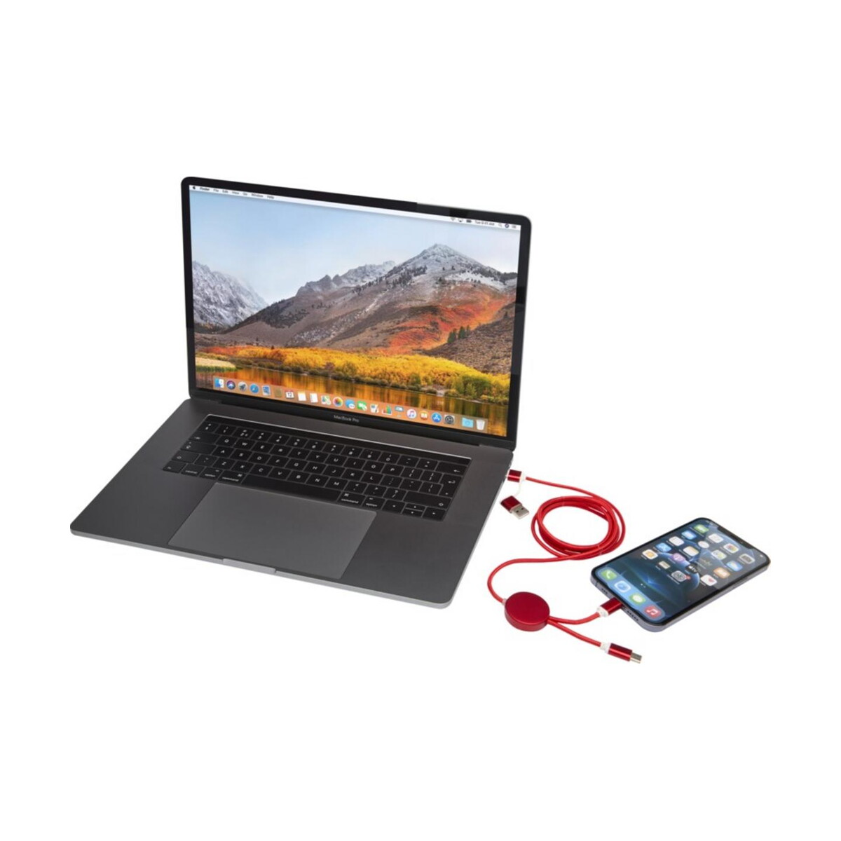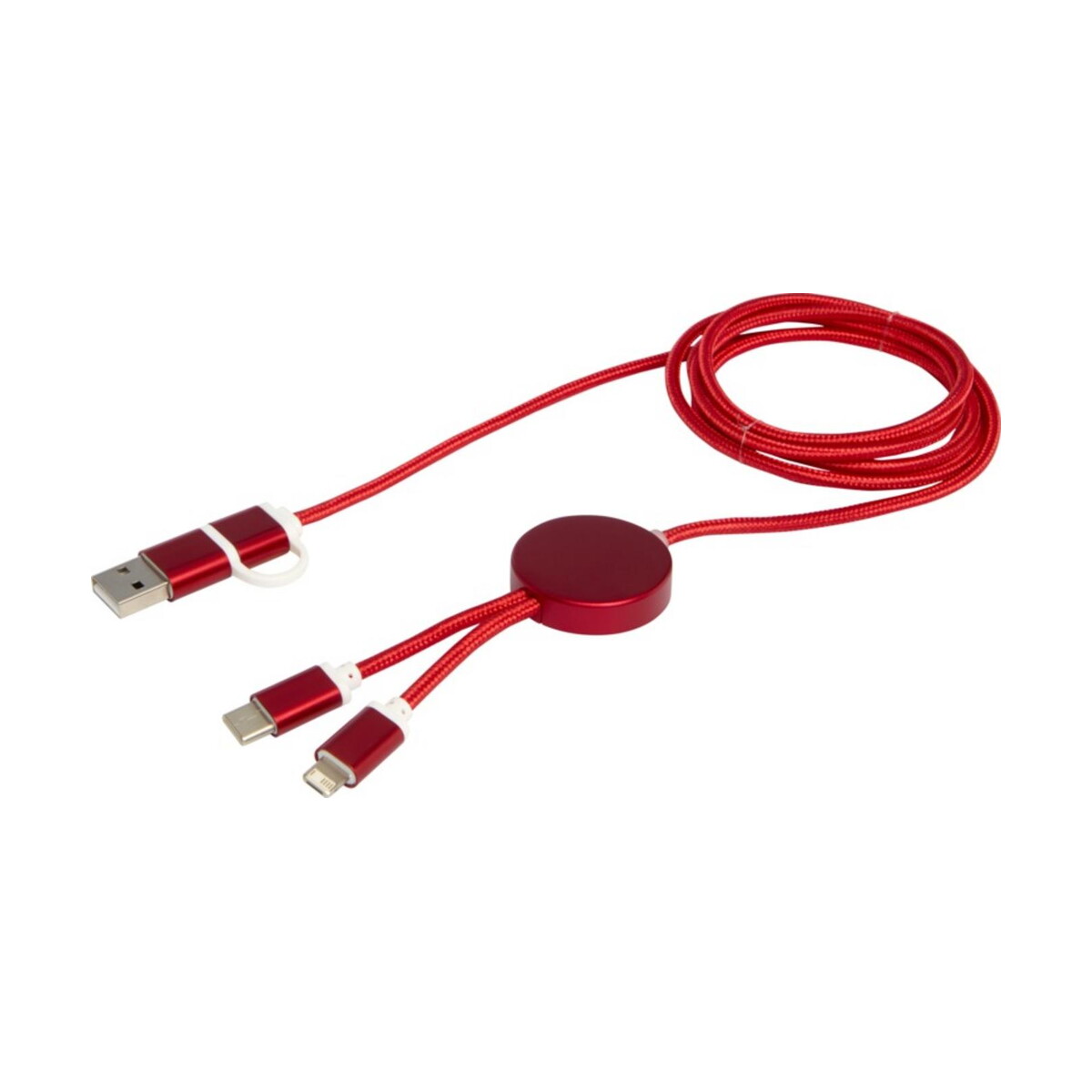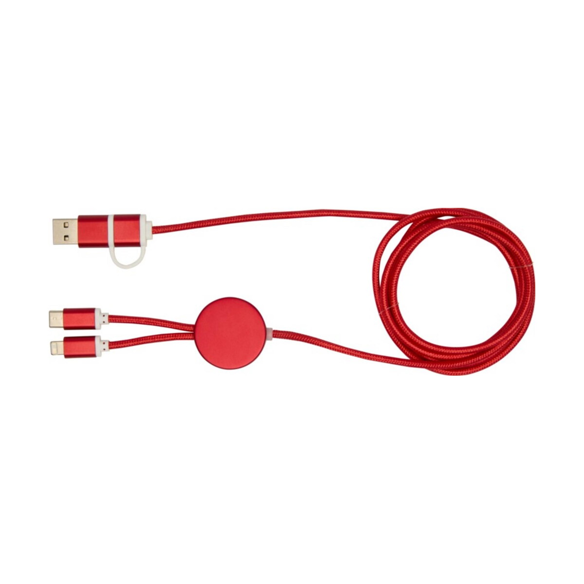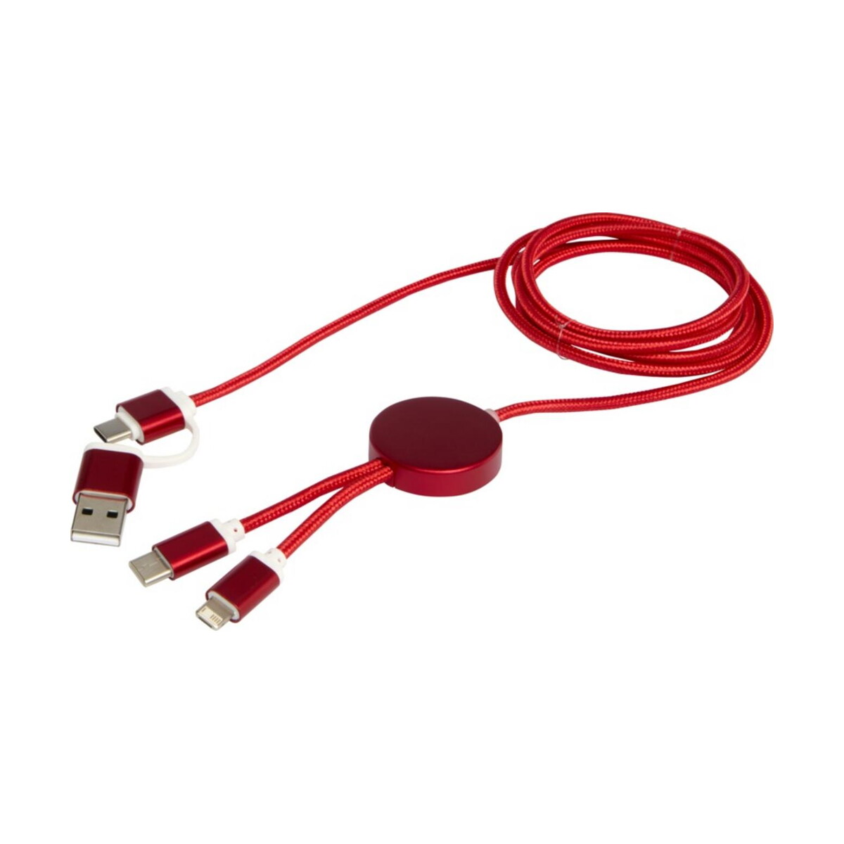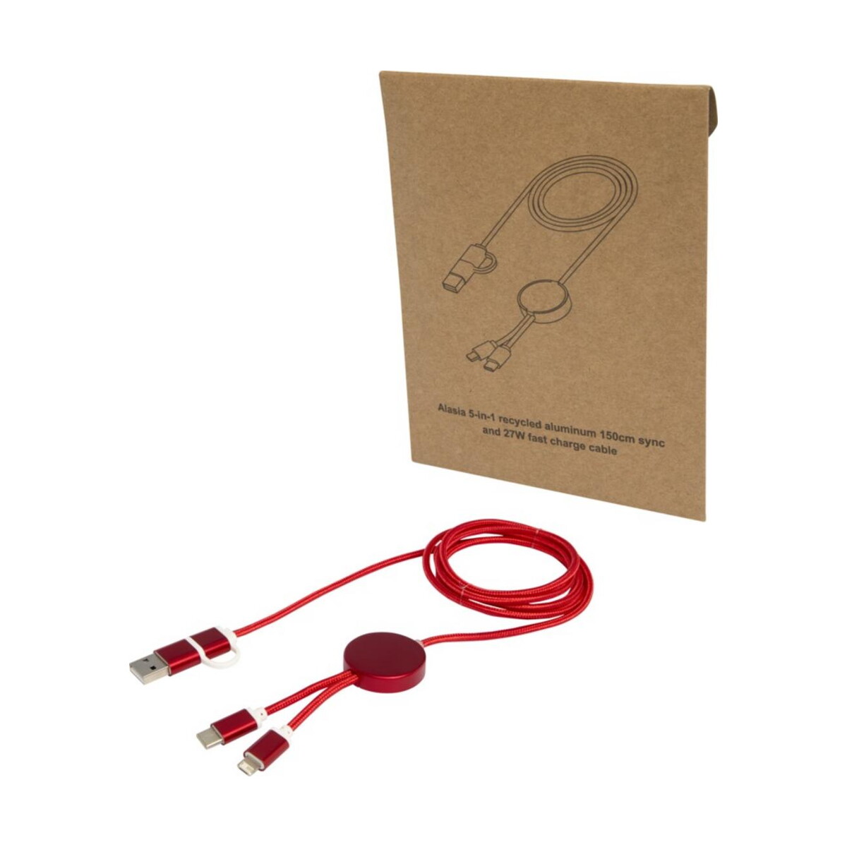 Alasia kabel do synchronizacji danych i szybkiego ładowania 5 w 1 27 W o długości 150 cm z tworzyw sztucznych i aluminium pochodzących z recyklingu to doskonałe narzędzie promocji – praktyczne, ekologiczne i stylowe. Wybierz go, aby stworzyć niezrównane reklamowe wrażenie i podarować odbiorcom wielofunkcyjność, która ułatwi im codzienność.