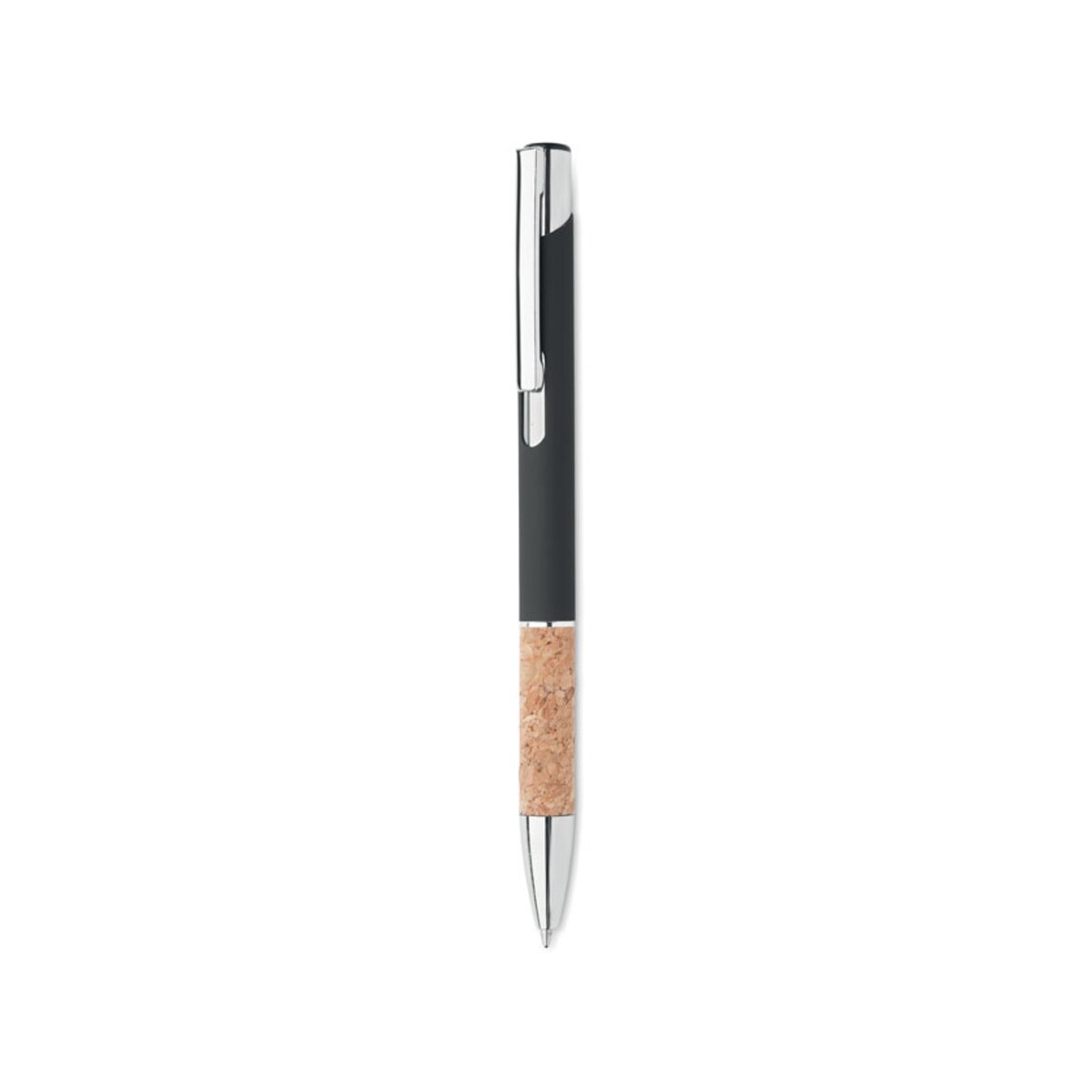 Aluminiowy długopis przycisk – VERIA to eleganckie, nowoczesne narzędzie piśmiennicze, które łączy w sobie lekką konstrukcję z aluminium oraz przyjazny dla środowiska korkowy uchwyt. Dzięki zastosowaniu niebieskiego wkładu pisanie jest płynne i wyraźne, a mechanizm przyciskowy gwarantuje szybkie wysuwanie i chowanie końcówki ✨. Model dostępny jest w czterech wersjach kolorystycznych – czarnej, białej, ciemnoniebieskiej i srebrnej matowej – co pozwala z łatwością dopasować go do identyfikacji wizualnej Twojej marki.