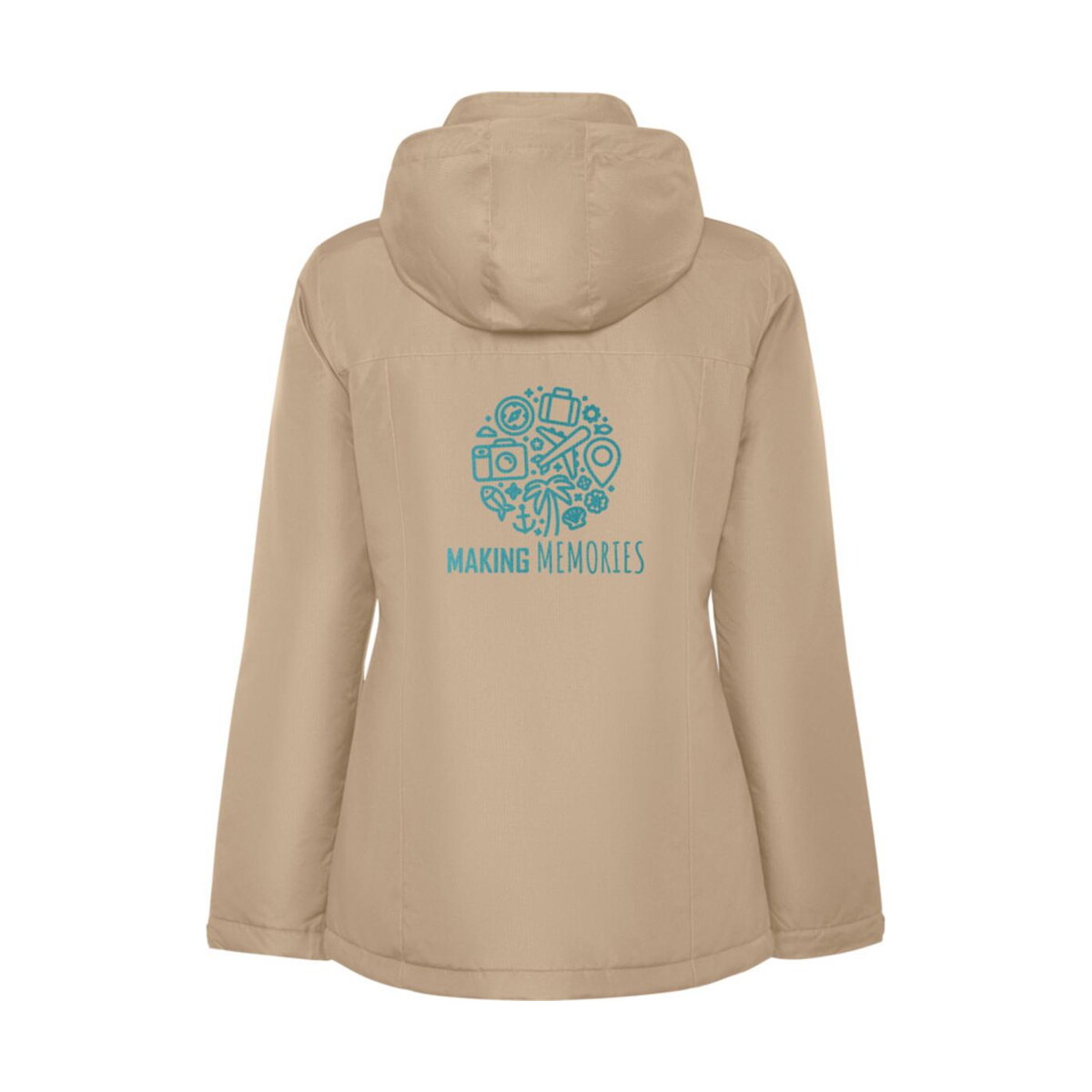 America damska ocieplana kurtka typu parka to znakomity sposób, by wyróżnić markę podczas chłodniejszych miesięcy. Model wykonany w 100% z recyklingowanego poliestru (waga zaledwie 850 g) jest nie tylko przyjazny środowisku, ale i trwały, dlatego sprawdzi się jako gadżet promocyjny na lata. Wodoodporna tkanina, dopasowany krój, wysoki kołnierz ze składanym, odpinanym kapturem oraz regulowane mankiety na rzep skutecznie chronią przed wiatrem i deszczem. Centralny suwak z patką, zasuwane kieszenie boczne oraz wewnętrzna kieszeń na rzep pozwalają bezpiecznie przechować telefon czy dokumenty. Co ważne, wewnętrzny dostęp do wzmocnień na plecach i lewej piersi ułatwia umieszczenie firmowego logo lub trwałego nadruku. 😊