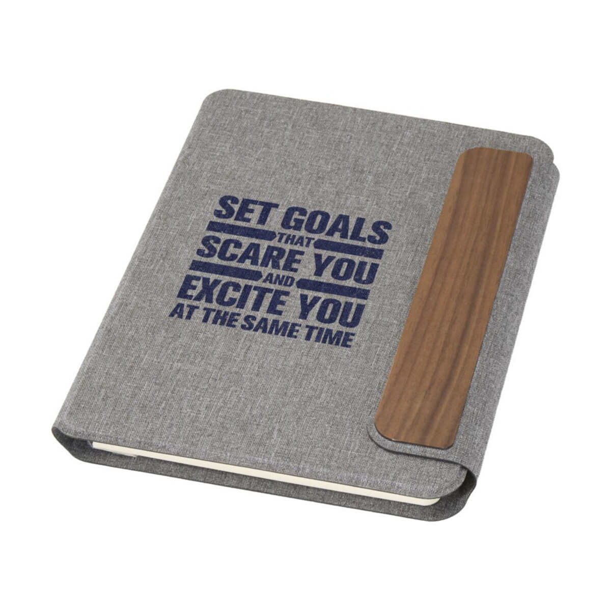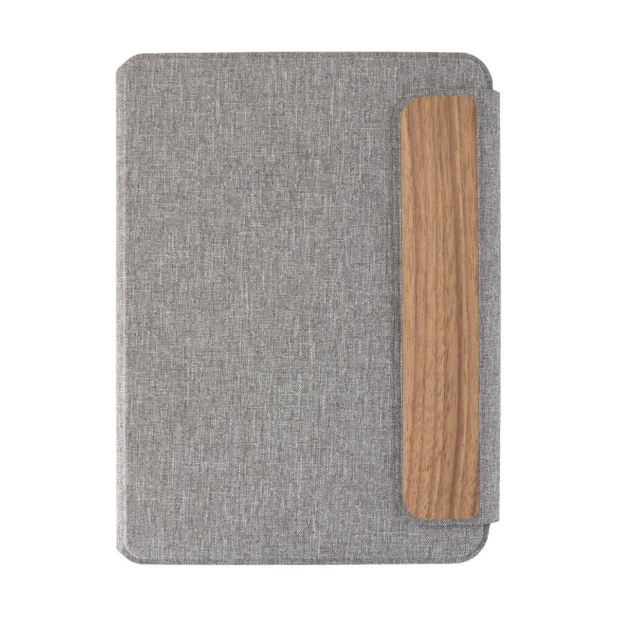 Andean portfolio A5 z recyklingu z certyfikatem RCS to wyjątkowo przemyślany gadżet biurowy, który łączy wysoki standard wykonania z troską o środowisko 🌿. Wykonany z Recycled PET Polyester potwierdzonego certyfikatem RCS i papieru FSC, staje się świadectwem odpowiedzialności marki. Twarda, szara okładka o wymiarach 20 x 17 cm i masie zaledwie 326,4 g zachwyca minimalistycznym designem, a magnetyczne zapięcie z orzechowego drewna dodaje wyrafinowanego charakteru. Wewnątrz kryje się wyjmowany notatnik z 64 kremowymi kartkami 80 g/m², idealnymi do szybkich zapisków podczas spotkań. Całość powstaje w technologii precyzyjnego zgrzewania, co gwarantuje odporność na codzienne użytkowanie 🙂.