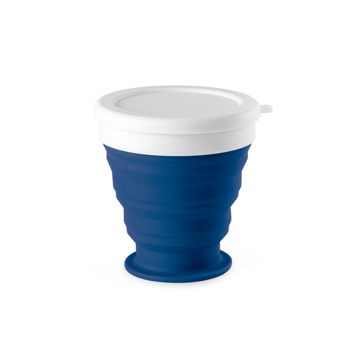Składany silikonowy kubek podróżny z pokrywką z PP. Zawiera uchwyt na wieczku. Kubek o pojemności do 250 mL