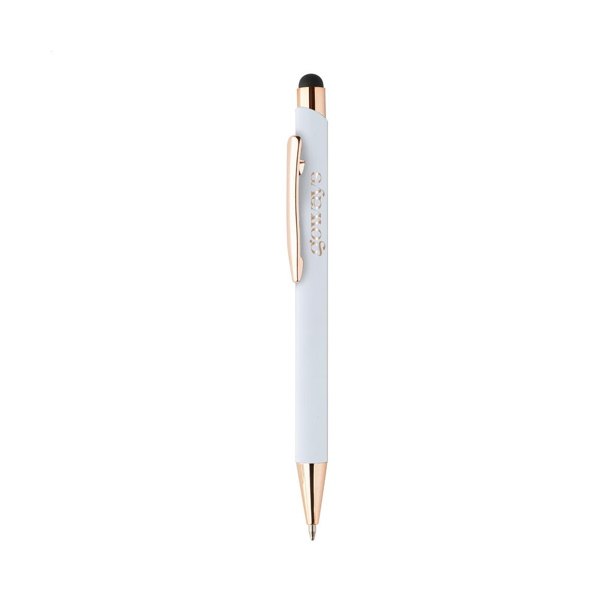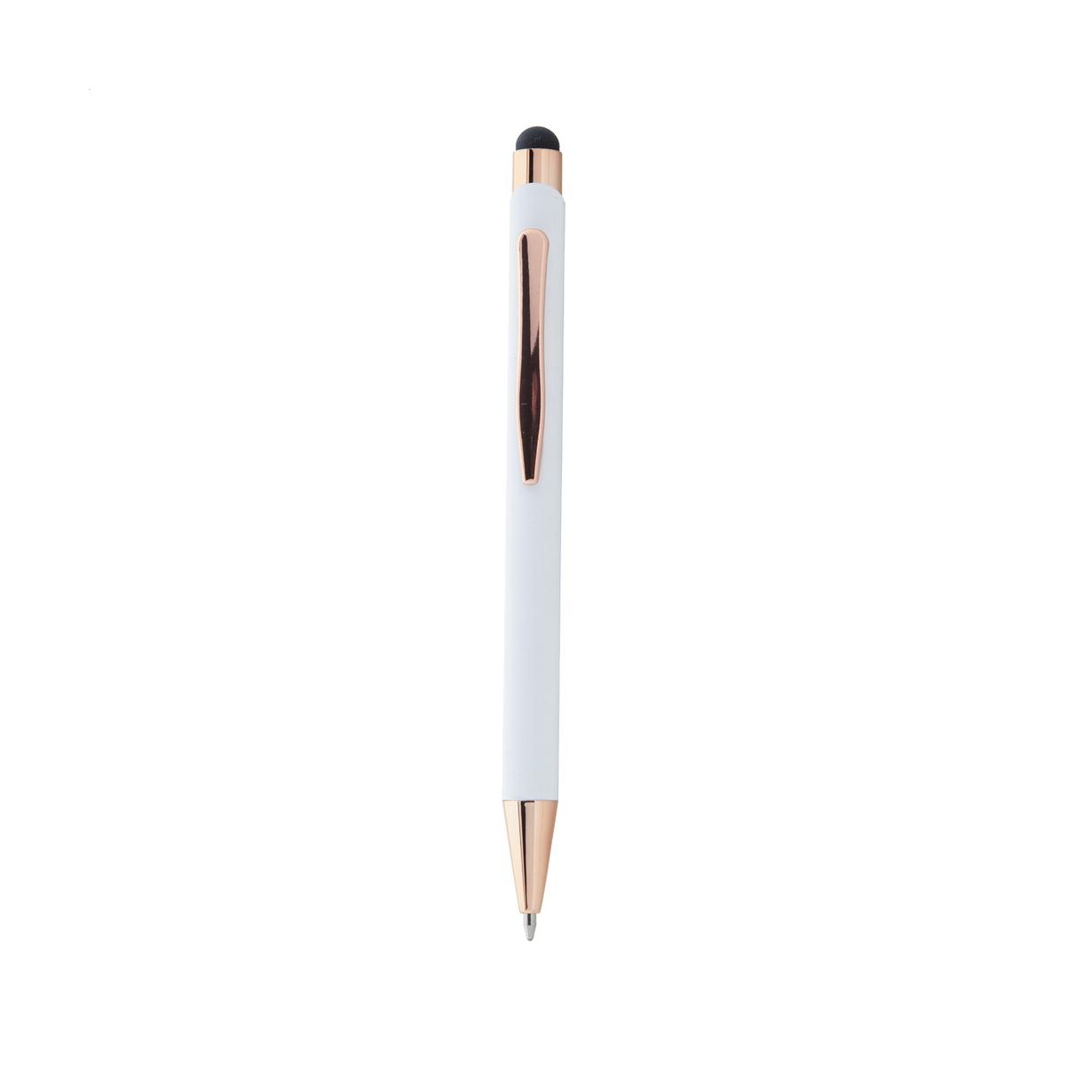 Auros długopis to wyrafinowane połączenie elegancji metalu z praktycznością technologii touch – prawdziwy gadżet, który zwraca uwagę subtelnymi detalami w kolorze różowego złota. Korpus wykonany z aluminium pochodzącego z recyklingu przy wymiarach ø10×142 mm i wadze zaledwie 15 g sprawia, że pisanie staje się lekkie i komfortowe, a przy tym przyjazne środowisku. Specjalna powłoka pod grawer lustrzany pozwala umieścić wyraziste logo lub inny nadruk, który zyska elegancki połysk – Twoi klienci docenią dbałość o detale 😊