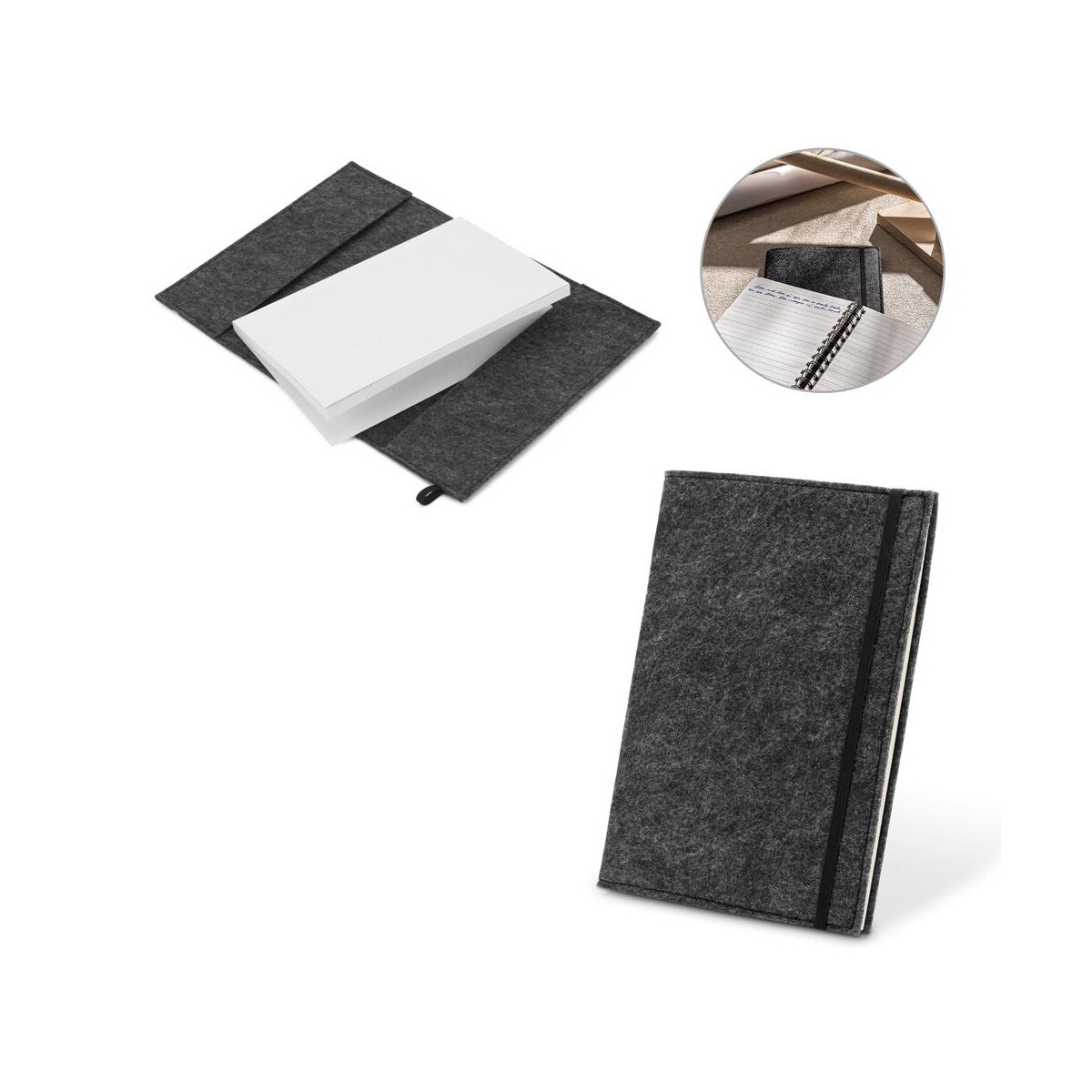 BALDWIN. Notatnik A5 z okładką z filcu z recyklingu (100% rPET) i stronami w linie w 100% z papieru pochodzącego z recyklingu sprawdzi się w kampaniach branży IT, finansowej, edukacyjnej oraz ekologicznej. Firmy konsultingowe mogą wręczać go podczas konferencji, biura architektoniczne wykorzystają jako szkicownik konceptów, a agencje kreatywne docenią go podczas burzy mózgów. To również doskonały upominek dla studentów, pracowników korporacji oraz uczestników eventów sustainability. 📘
