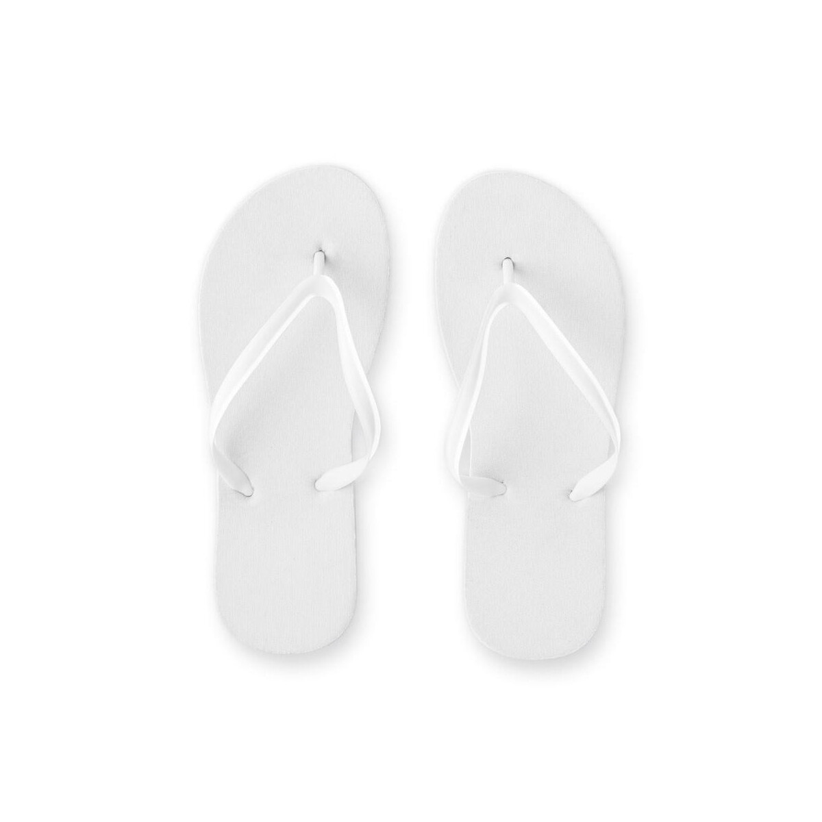 BALI L / XL. Kapcie z w pełni konfigurowalną podeszwą sublimacyjną w uniwersalnym, białym kolorze, w rozmiarach 40-43, trafią w gust osób ceniących wygodę i styl. Doskonałe dla gości luksusowych resortów, uczestników konferencji na plaży, klientów biur podróży czy jako prezent w pakietach powitalnych podczas premier aut czy jachtów. W opcji personalizacji otrzymujesz je zmontowane w ekologicznej torbie – wystarczy rozdać i obserwować, jak Twoje logo wędruje po świecie! 😀