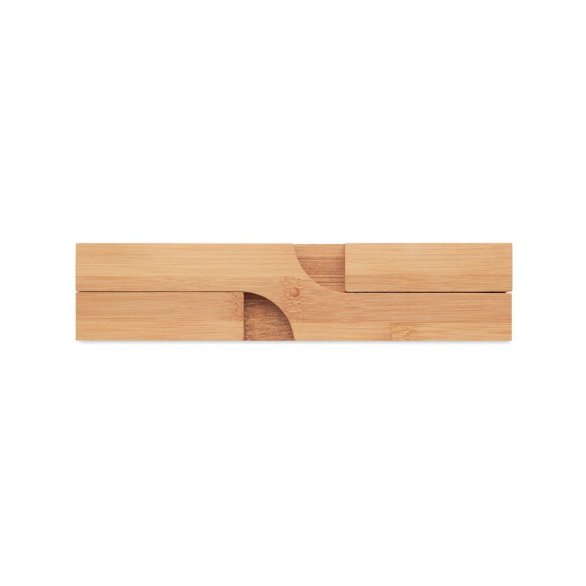 Bambusowa składana podstawka – IMBA to ekologiczny gadżet reklamowy, który łączy w sobie funkcjonalność, naturalne piękno i możliwość pełnej personalizacji. Wykonana w 100% z wytrzymałego bambusa, odznacza się wyjątkową lekkością, a po złożeniu zajmuje minimum miejsca, co czyni ją doskonałym towarzyszem podróży, pracy zdalnej oraz domowej organizacji przestrzeni. Firmy mogą łatwo umieścić na niej własne logo metodą grawerowania lub tampodruku, tworząc praktyczny nośnik marki, który będzie codziennie eksponowany na biurkach klientów i pracowników 😊.