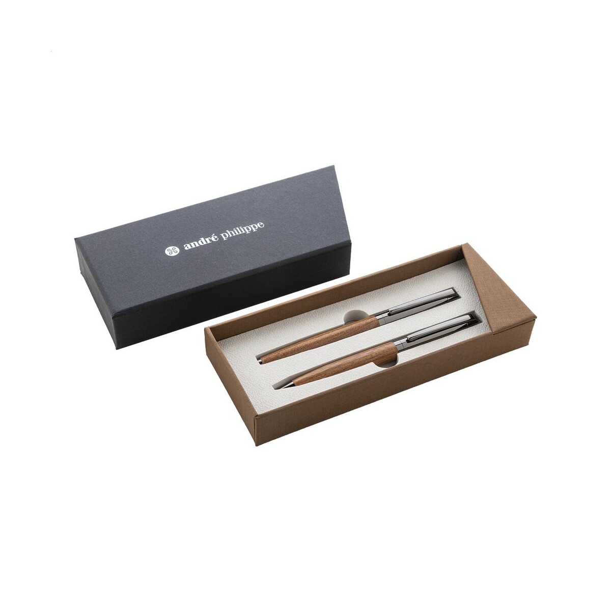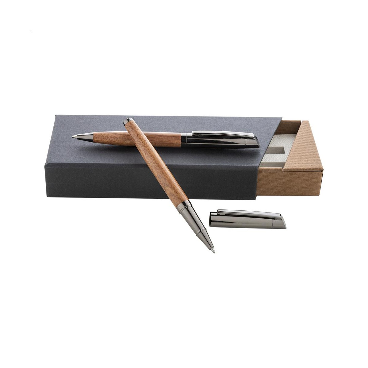 Bidarray zestaw piśmienniczy to prawdziwie prestiżowa kompozycja dla miłośników eleganckiego pisania. W jego skład wchodzi długopis oraz pióro kulkowe umieszczone w stylowym, dwukolorowym pudełku prezentowym, które samo w sobie stanowi wyrafinowaną oprawę podarunku 🙂. Korpusy instrumentów wykonano z harmonijnie połączonych materiałów: Metal nadaje im trwałość i subtelny połysk, a szlachetne Drewno w naturalnym odcieniu podkreśla wyjątkowy charakter. Płynnie piszący, niebieski wkład dba o komfort użytkownika od pierwszej kreski. To propozycja o wymiarach 180×75×30 mm i wadze 144 g – parametry te świadczą o solidności, ale też o tym, że całość świetnie leży w dłoni oraz w kieszeni marynarki.