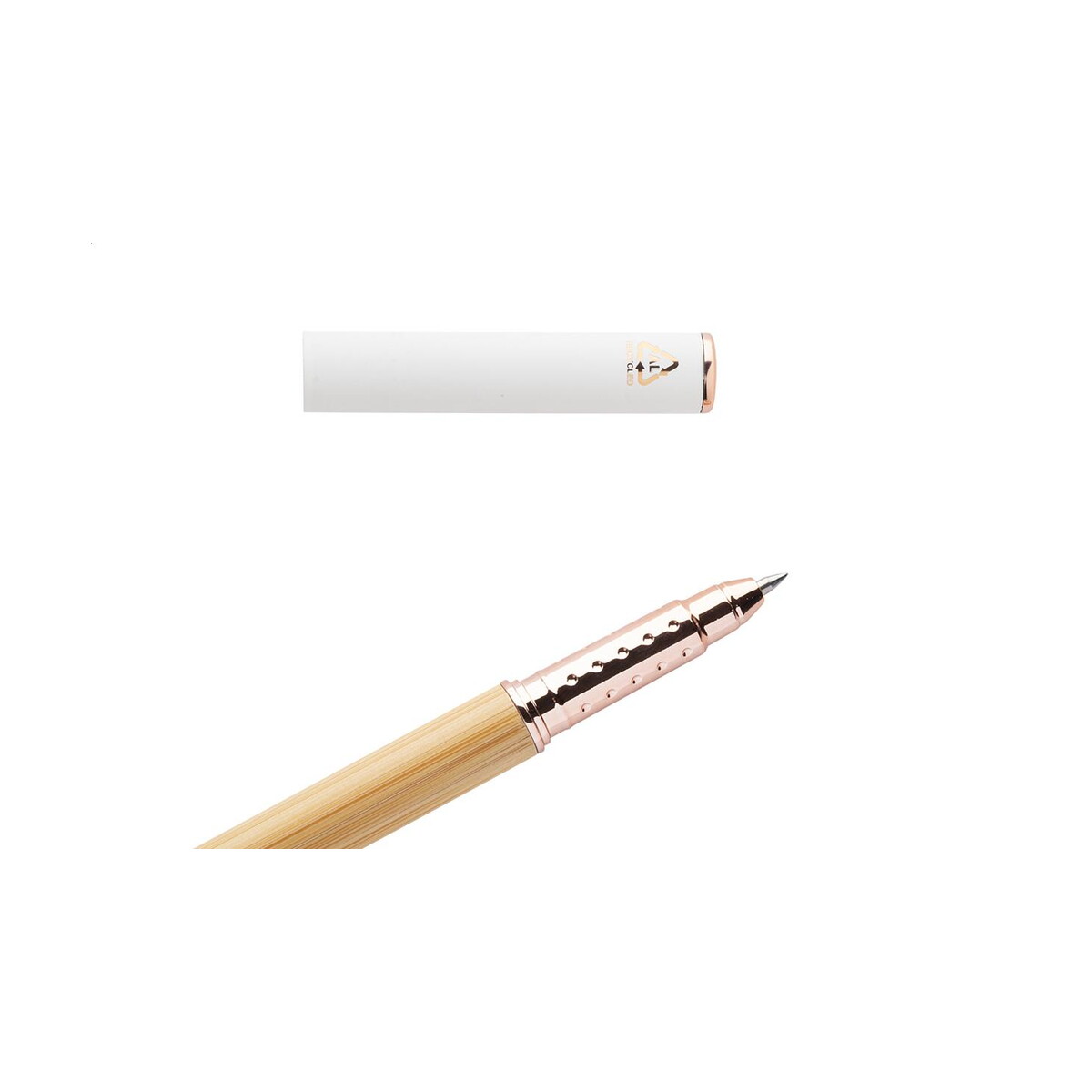 Blush pióro kulkowe to połączenie elegancji i ekologicznego podejścia, które zachwyci każdego odbiorcę. Korpus z bambusa w naturalnym odcieniu harmonijnie łączy się z detalami z aluminium z recyklingu w kolorze różowego złota – całość tworzy efektowny kontrast, podkreślony gumowaną skuwką o przyjemnej w dotyku fakturze. Specjalna powłoka przygotowana pod grawer umożliwia wykonanie lustrzanego zdobienia w tym samym odcieniu, dzięki czemu Twoje logo i każdy nadruk będą prezentować się wyjątkowo ekskluzywnie 🙂