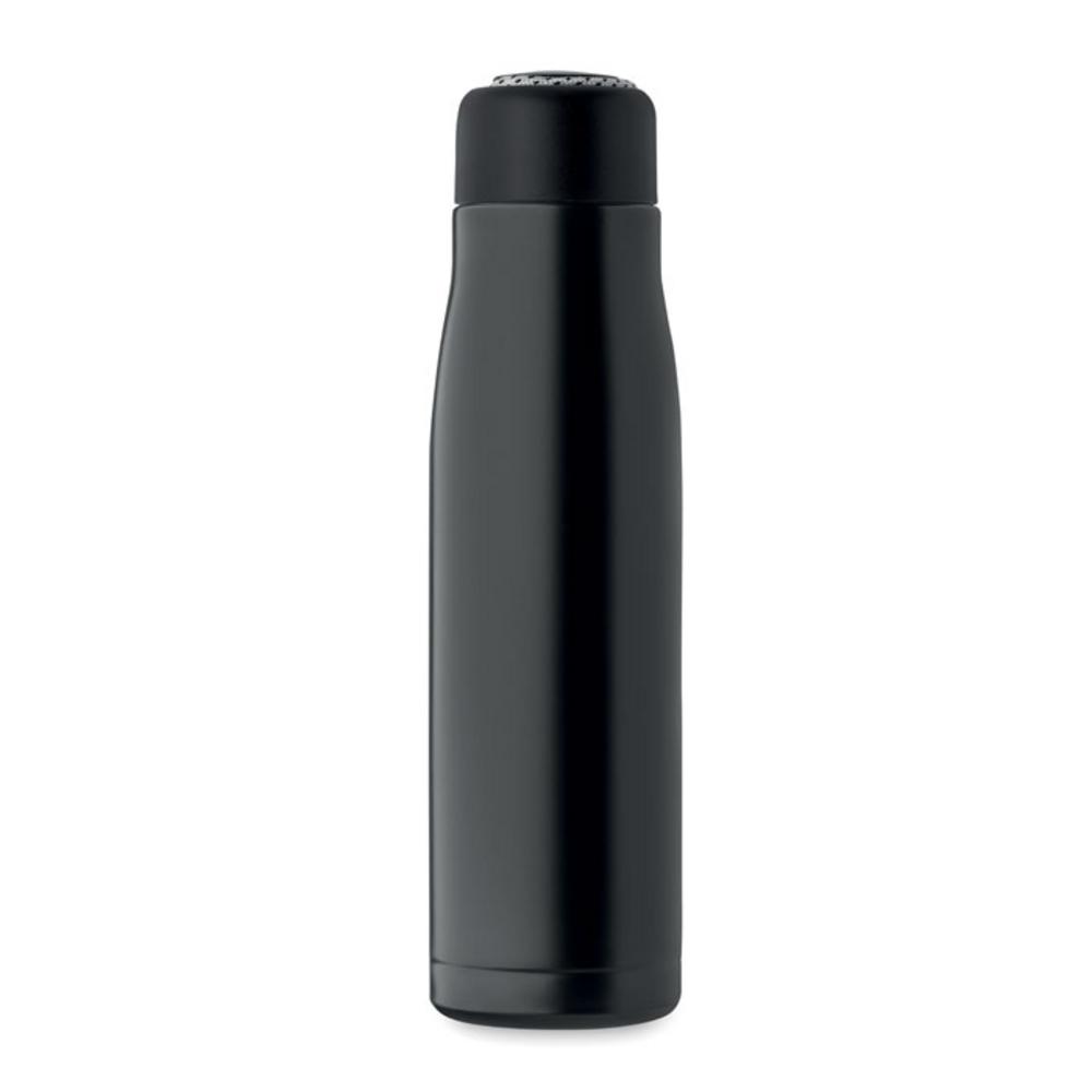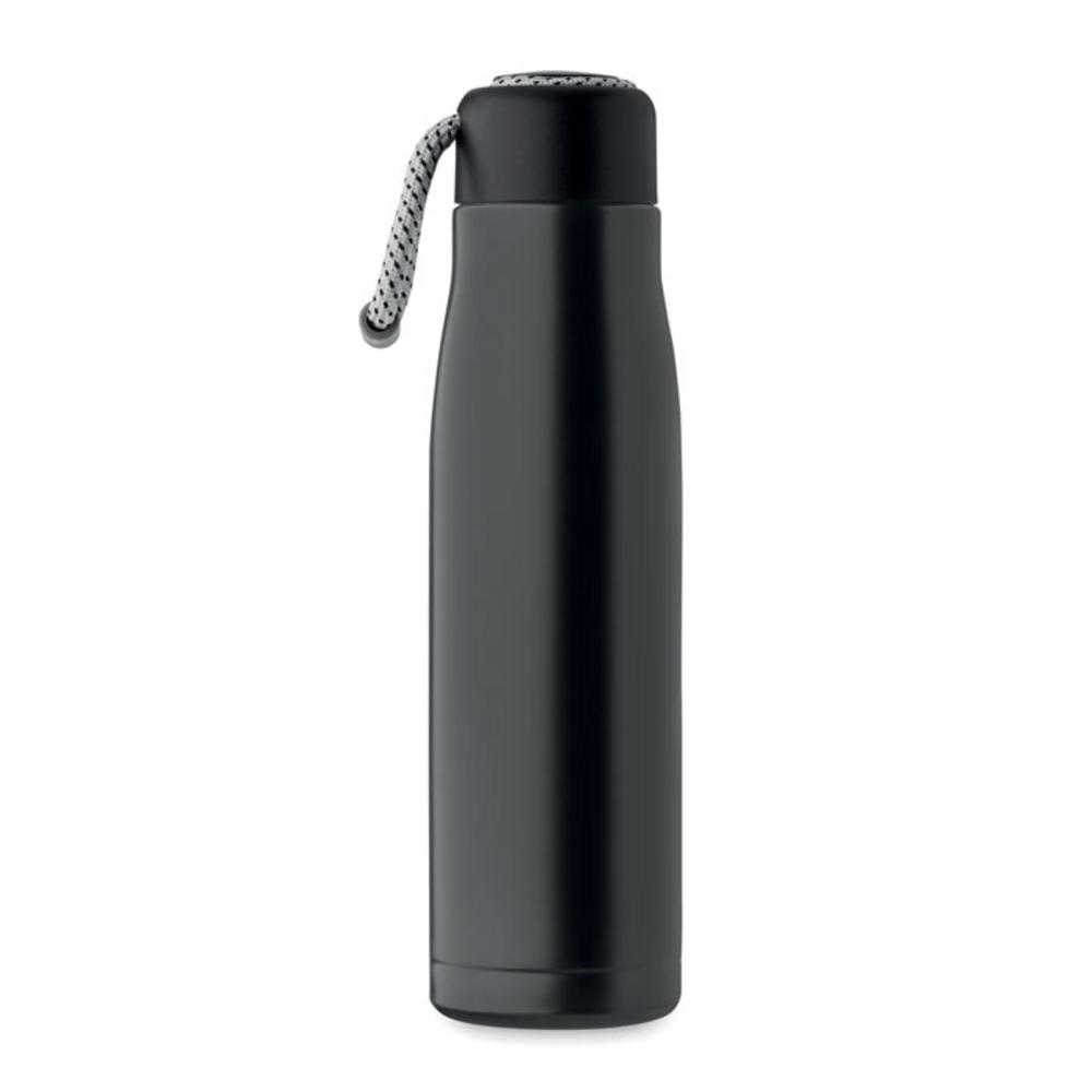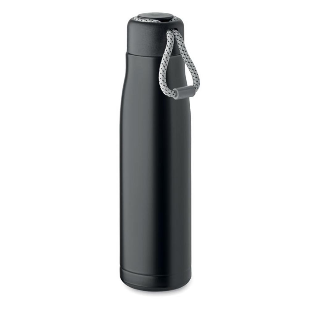 Butelka dwuścienna 500 ml CORDLE to znakomity gadżet promocyjny, który pozwoli wyróżnić się każdej marce 🙂 Dzięki wykonaniu aż w 90% z recyklingowanej stali nierdzewnej model ten wpisuje się w aktualne trendy eko i podkreśla prośrodowiskowe wartości dla Twojej firmy. Izolacja próżniowa oraz podwójne ścianki zapewniają utrzymanie temperatury napoju przez długie godziny, a pojemność 500 ml sprawdzi się zarówno w miejskiej dżungli, jak i na szlaku. Zintegrowany uchwyt sznurkowy w zakrętce z PP sprawia, że butelka jest wygodna w transporcie i nie przecieka, co czyni ją perfekcyjnym towarzyszem codziennych aktywności.