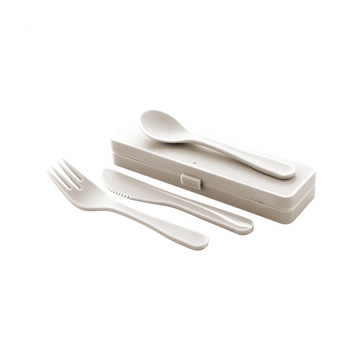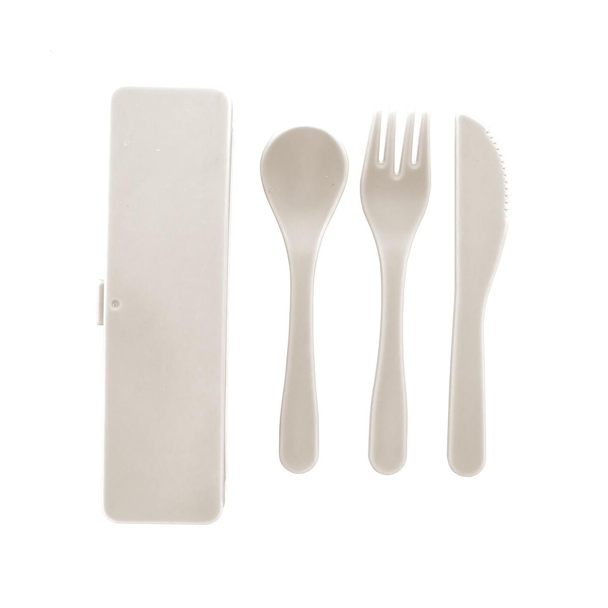 Camino zestaw sztućców to praktyczny, kompaktowy i wyjątkowo wygodny w transporcie gadżet, który sprawdzi się wszędzie tam, gdzie liczy się wygoda i estetyka podawania posiłków. W skład zestawu wchodzi widelec, nóż oraz łyżka wykonane z wytrzymałego tworzywa PP i schowane w dopasowanym kolorystycznie etui. Dzięki wymiarom 50×165×25 mm i masie zaledwie 63 g bez problemu zmieścisz go w torbie, plecaku czy nawet w szufladzie biurka 🙂. Camino zestaw sztućców dostępny jest w czterech eleganckich wariantach kolorystycznych: naturalnym, ciemnoniebieskim, czarnym oraz białym, co pozwala łatwo dobrać wersję spójną z identyfikacją wizualną Twojej marki.