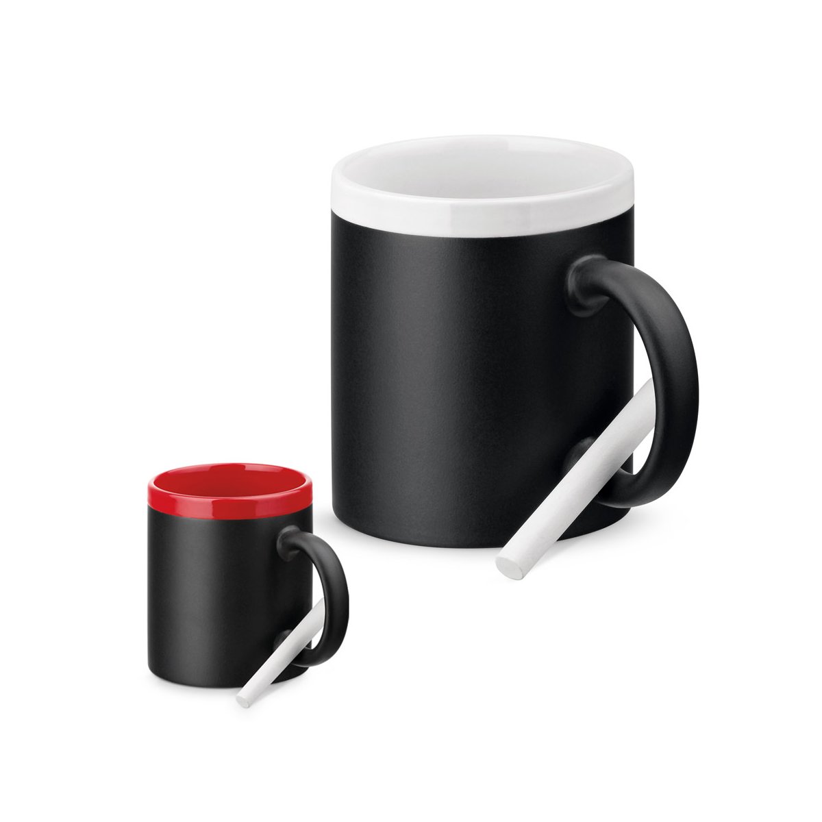 Kubek ceramiczny o matowym wykończeniu. Pojemność do 360 mL. Kreda w zestawie. Dostarczany w pudełku