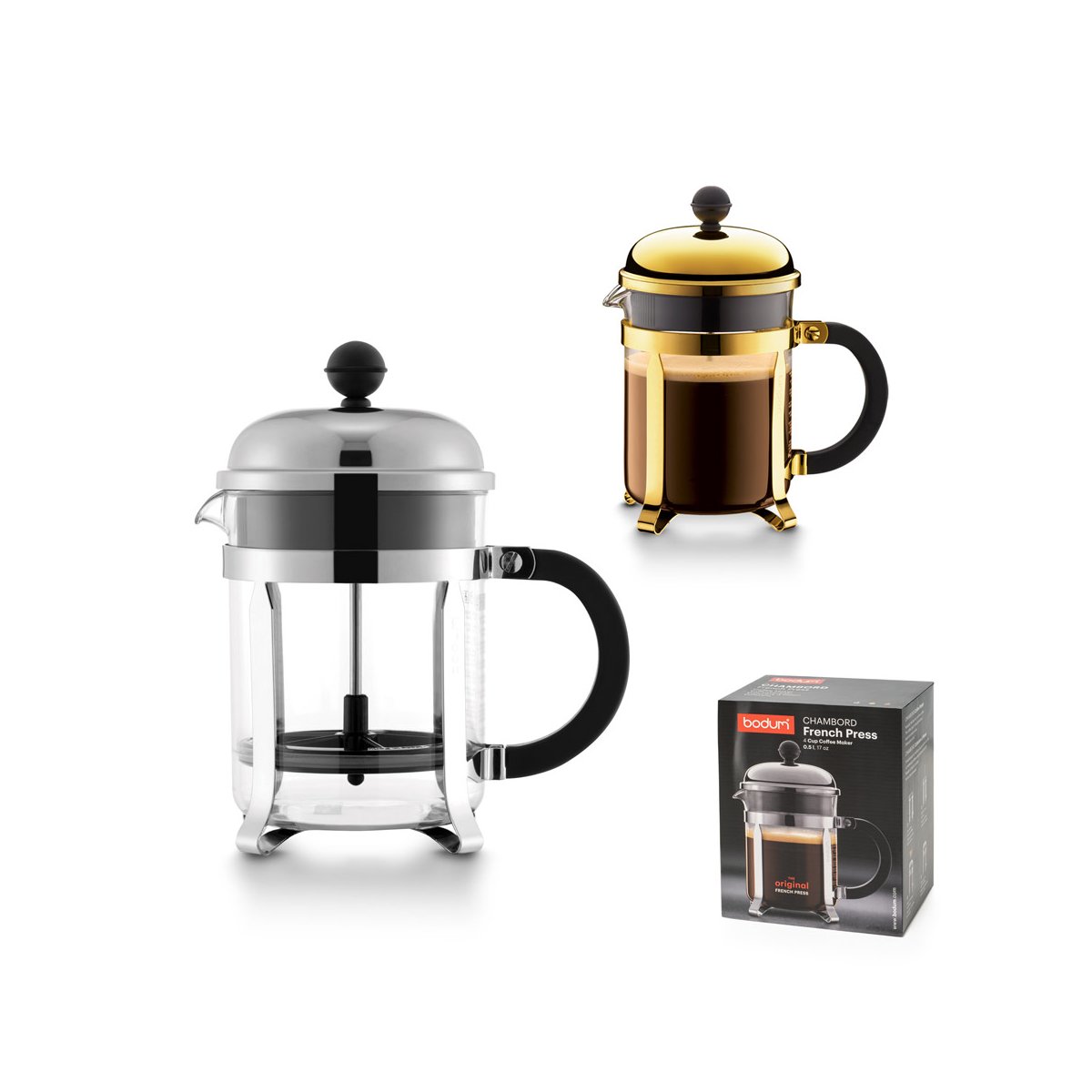 Zaparzacz do kawy typu French Press z pojemnikiem z wysokiej jakości szkła borokrzemowego. Szkło jest odporne na wysokie temperatury i nie zmienia naturalnego smaku kawy. Posiada również tłok, ze stali nierdzewnej, który zapobiega wypadaniu ziaren z pojemnika podczas serwowania kawy. Rama i pokrywa, również wykonane ze stali nierdzewnej, są poddawane różnym procesom chromowania, aby uzyskać trwałą i błyszczącą powierzchnię. Rączka, wykonana z PP o matowym wykończeniu, daje wygodny uchwyt i podkreśla jakość wykonania. System French Press jest ceniony przez miłośników kawy na całym świecie za prostotę przygotowania i czystość smaku. Zaparzacz do kawy Chambord ma ponadczasowy design i jest produkowany z fachową wiedzą i najwyższą jakością, jakiej oczekują jego entuzjaści. Pojemność do 500 mL. Dostarczany w pudełku upominkowym
