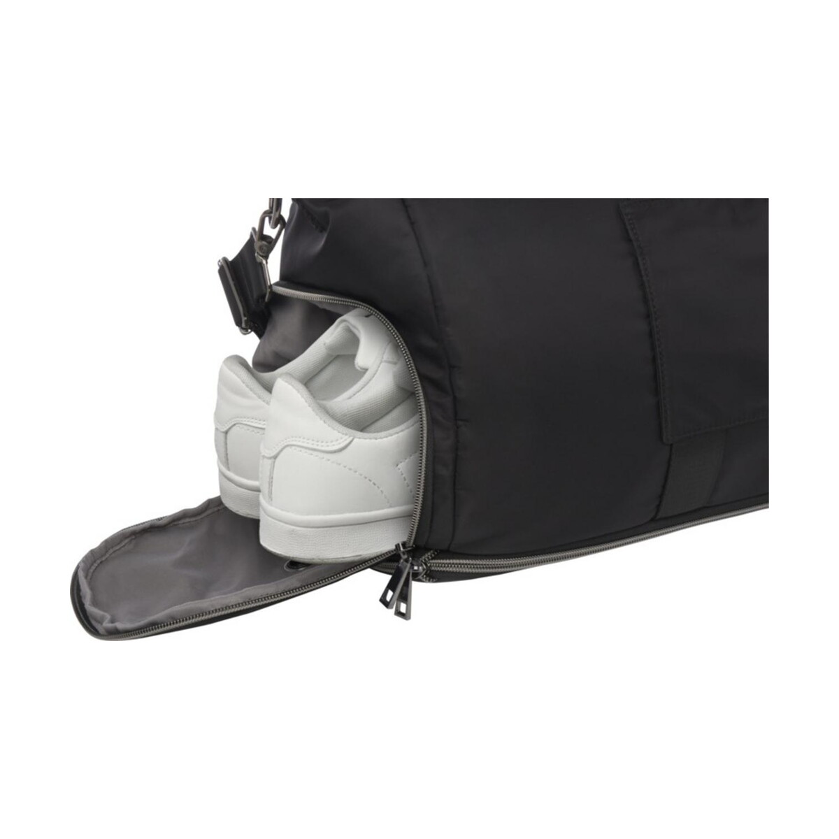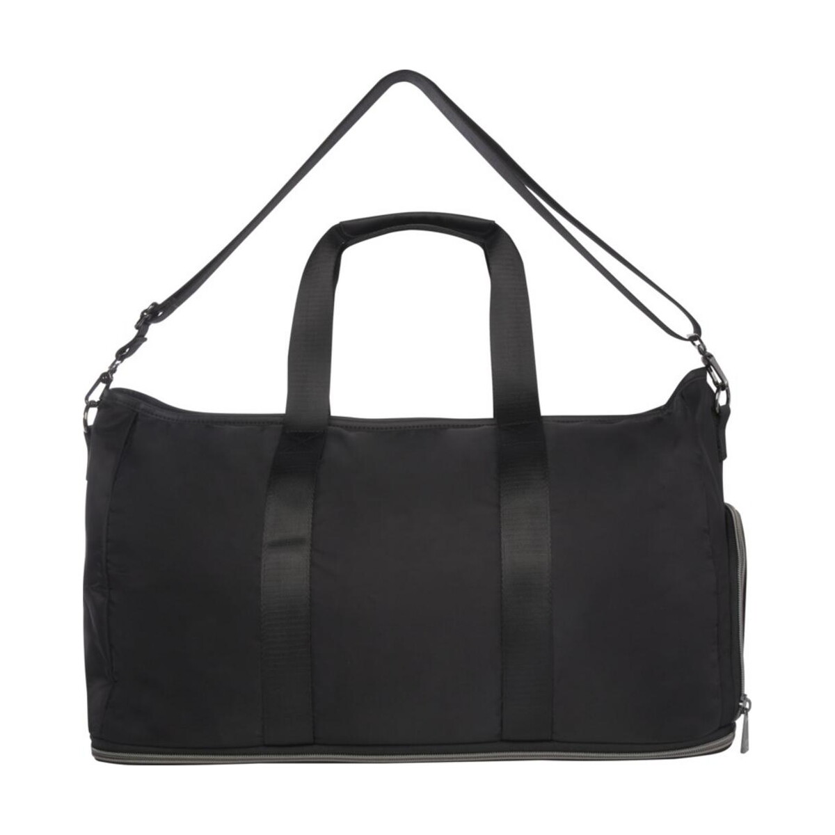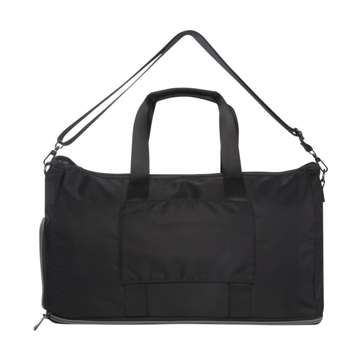 Przemyślana konstrukcja obejmuje pojemną komorę główną, dużą, szczelną kieszeń z TPU na mokre ręczniki lub kosmetyki, dwie wewnętrzne kieszenie na drobiazgi oraz dedykowaną komorę na buty, która oddzieli obuwie od reszty bagażu – to prawdziwie znakomite rozwiązanie 😉. Bezpieczna, ukryta kieszeń z tyłu pełni również funkcję paska na wózek, a odpinane, regulowane paski barkowe pozwalają nosić torbę jak plecak. Czarny kolor i minimalistyczny design sprawiają, że doskonale eksponuje logo Twojej marki.