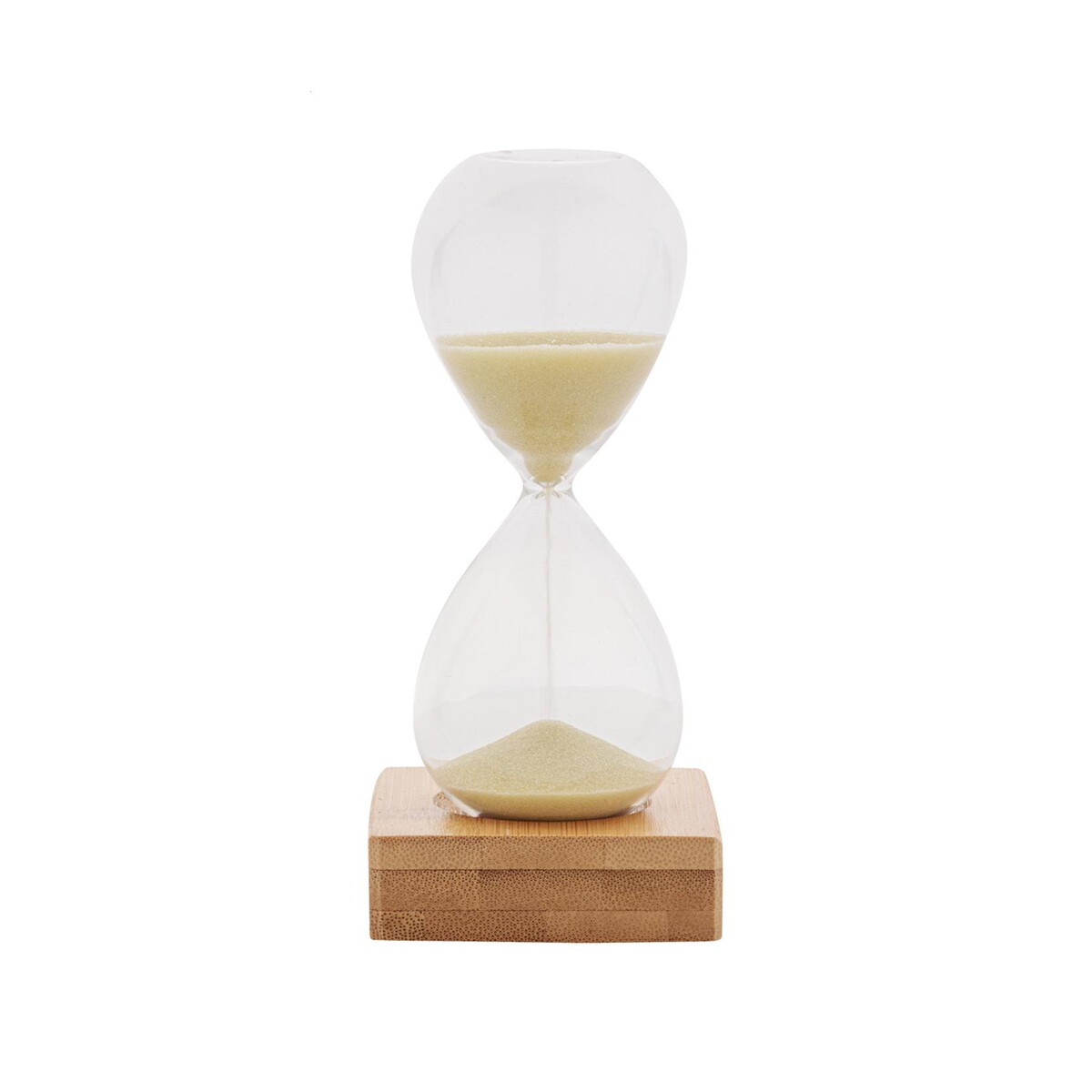 Chronos klepsydra to wyrafinowany, a zarazem funkcjonalny element wystroju biura, który wprowadzi nutę elegancji oraz ekologiczną świadomość do każdego wnętrza ⏳. Jej szklany korpus powstał ze szkła borokrzemowego, cenionego za wyjątkową odporność na uszkodzenia i przejrzystość, natomiast naturalna podstawka z bambusa podkreśla wrażenie lekkości i nowoczesności 🌿. Czas odmierzany jest tu w perfekcyjnych 5 minutach – to doskonały sposób na krótkie sesje kreatywnego myślenia, przerwy w pracy techniką Pomodoro czy kontrolę czasu w trakcie prezentacji.