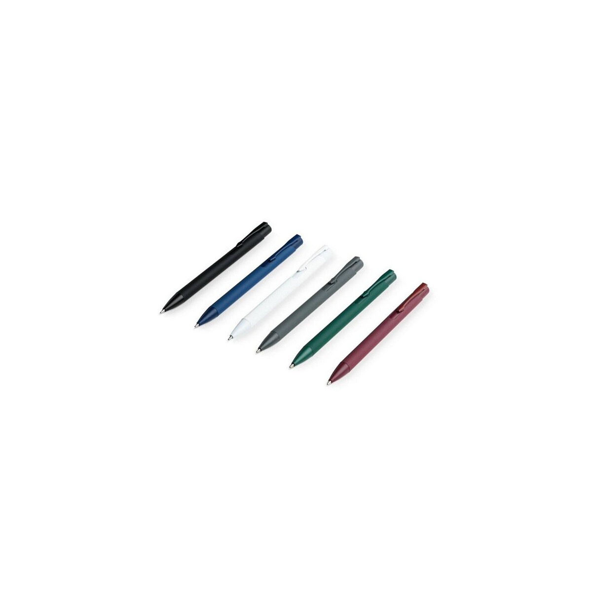 CLINT. Pióro kulkowe z recyklingowanego aluminium (100% rAL) z gumowym wykończeniem to prawdziwy ambasador nowoczesnej ekologii w świecie eleganckich akcesoriów piśmienniczych. Wykonany w całości z ponownie przetworzonego aluminium, prezentuje się nadzwyczaj solidnie, a jednocześnie lekko – waży zaledwie 17 g. Dzięki matowej, przyjemnej w dotyku powłoce z gumy, każdy ruch dłoni staje się czystą przyjemnością, a niebieski tusz płynie gładko po papierze. CLINT. Pióro kulkowe z recyklingowanego aluminium (100% rAL) z gumowym wykończeniem występuje w aż sześciu modnych barwach: czarnej, bordowej, szarej, granatowej, białej oraz ciemnozielonej – z łatwością dobierzesz więc wariant współgrający z identyfikacją wizualną Twojej marki 😊.