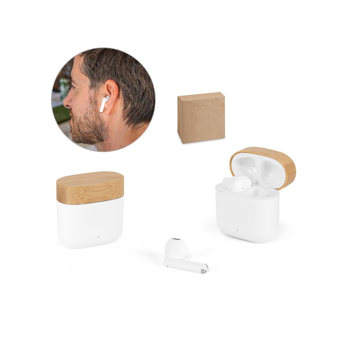 Dzięki dużej, płaskiej powierzchni bambusowej pokrywy etui ten model świetnie nadaje się na nadruk lub logo. Powstaje w ten sposób unikalny gadżet reklamowy, który przyciąga wzrok i pozostaje w codziennym użyciu odbiorcy. COBAIN. Słuchawki bezprzewodowe z 5-godzinnym czasem pracy wykonane w przetworzonego ABS (100% rABS) i bambusa sprawdzą się w promocji branży IT, firm szkoleniowych, start-upów ekologicznych, agencji kreatywnych oraz studiów muzycznych. Wykorzystane w kampanii reklamowe dołączenie do pakietu powitalnego dla nowych pracowników czy jako nagroda w konkursie online wzmocni wizerunek proeko i nowoczesności 🤝.