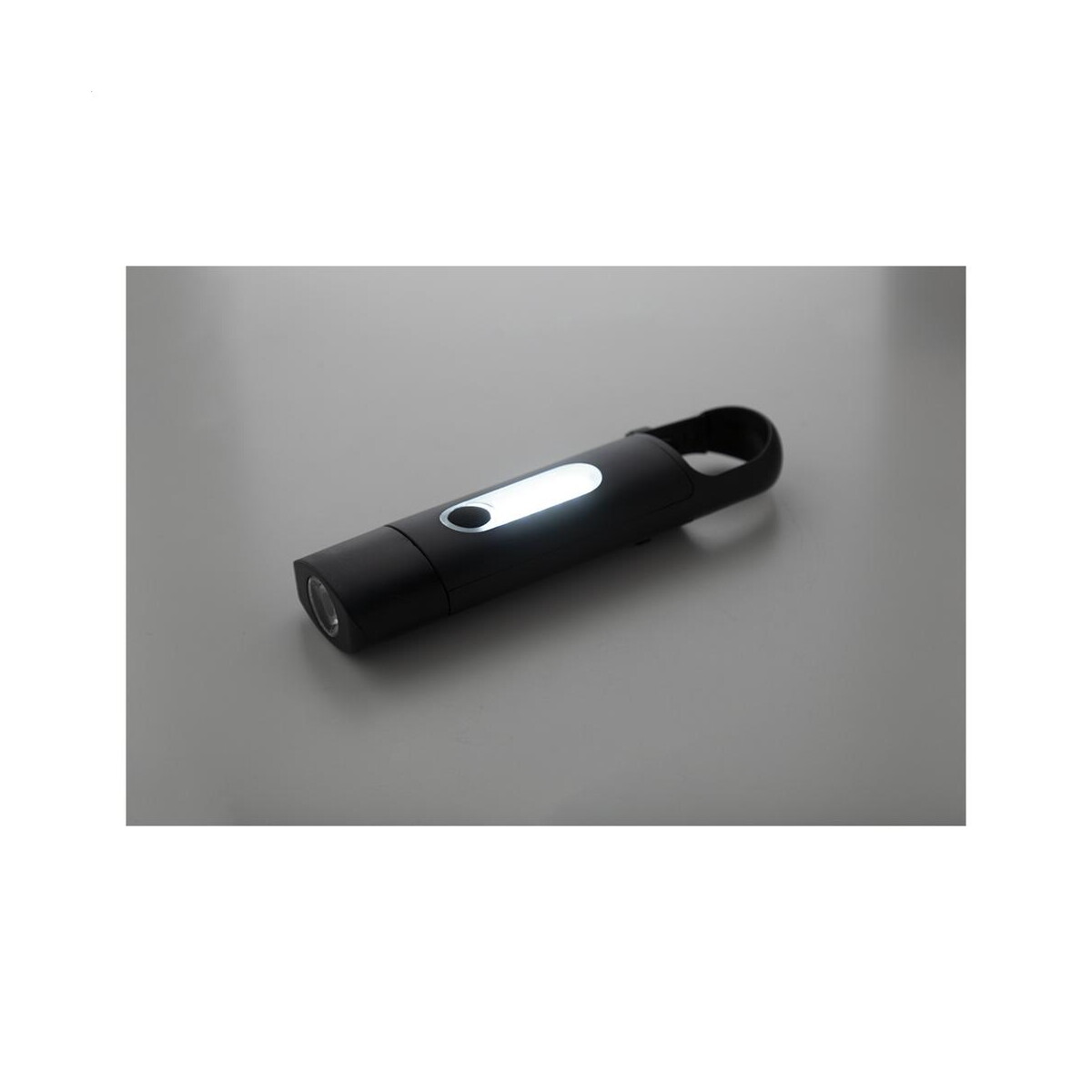 Cobiner mini latarka RABS to niewielkie, lecz potężne źródło światła, które zrobi wrażenie na każdym odbiorcy. Obudowa wykonana z ABS pochodzącego z recyklingu, wymiary 31×110×15 mm i waga zaledwie 42,5 g sprawiają, że latarka staje się lekkim, ekologicznym i niezwykle poręcznym gadżetem. Dzięki wbudowanemu akumulatorowi 200 mAh ładowanemu przez USB, mocnej lampie COB z przodu i reflektorowi COB z boku, a także trzem trybom świecenia, urządzenie jest znakomite do codziennych zadań, wędrówek czy pracy w terenie. Dołączony kabel USB ułatwia szybkie doładowanie baterii, a praktyczny karabińczyk pozwala przypiąć latarkę do kluczy lub plecaka 🙂.