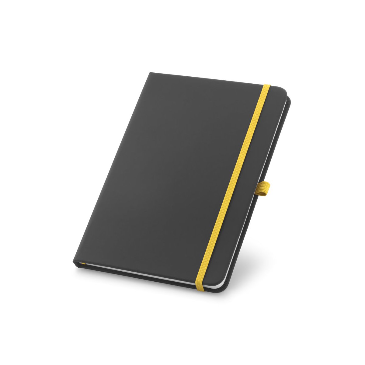 Notatnik A5 w PU z twardą okładką. Zawiera 160 stron w linie, zakładkę separacyjną dostępną w różnych kolorach, elastyczną opaskę i uchwyt na długopis (nie jest dołączony)