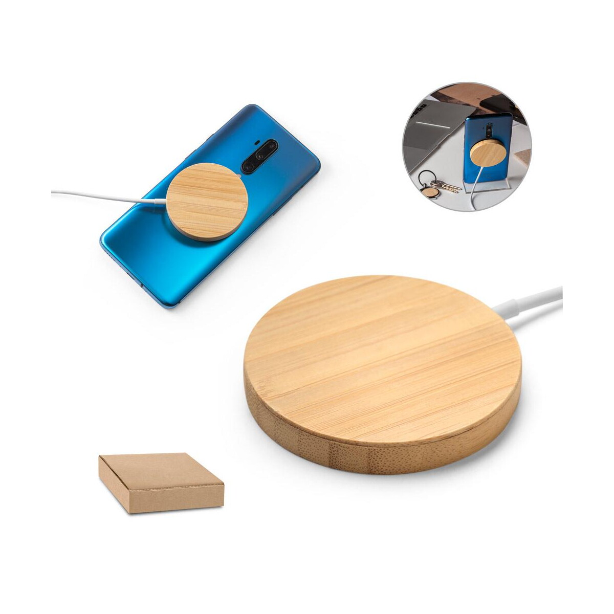 DAIMLER. Superszybka bezprzewodowa ładowarka magnetyczna 15 W wykonana z bambusa będzie rewelacyjnym wsparciem promocyjnym zwłaszcza dla branży e-commerce, technologicznej, energetycznej, turystycznej czy fitness. Jako reklamowe akcesorium do smartfonów z logo podniesie rangę eventów targowych, konferencji czy programów lojalnościowych. Doskonale wpasuje się w nowoczesne biura architektoniczne, agencje kreatywne, studia projektowe – wszędzie tam, gdzie ceni się szyk oraz zrównoważone materiały.
