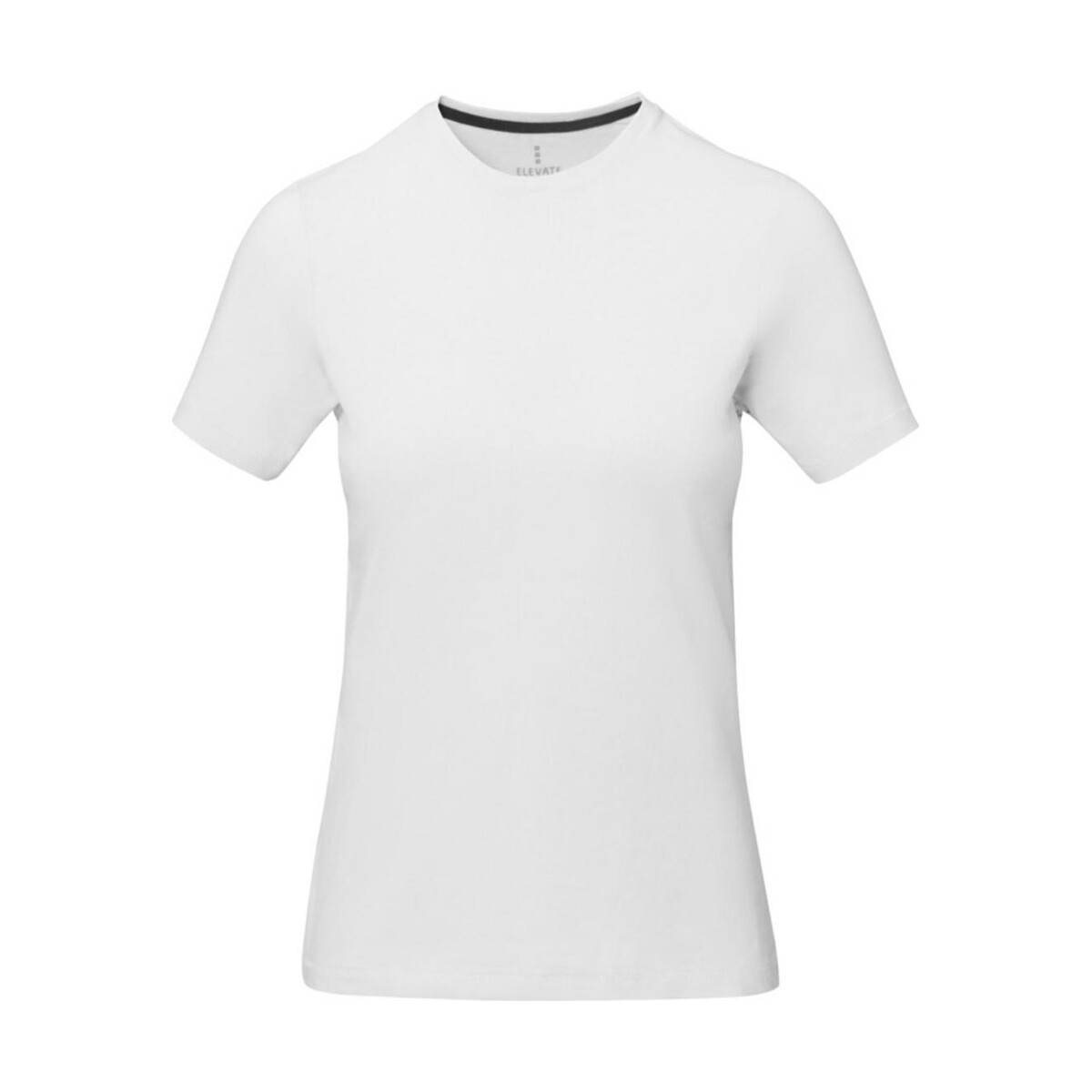 Damski t-shirt Nanaimo z krótkim rękawem to wszechstronny, a zarazem elegancki wybór, który podkreśli charakter każdej kampanii promocyjnej 😊. Wykonany w 100% z certyfikowanej bawełny BCI typu ringspun o gramaturze 160 g/m2, gwarantuje przyjemny dotyk oraz wyjątkową trwałość podczas wielokrotnego prania. Zgrabny, kobiecy krój z bocznymi szwami, wzmocnione ramiona oraz nadrukowany wewnątrz znak firmowy Elevate sprawiają, że koszulka nie traci formy nawet po długim użytkowaniu. Waga jedynie 130 g dodaje lekkości, dzięki czemu sprawdzi się zarówno latem, jak i jako pierwsza warstwa pod bluzę.