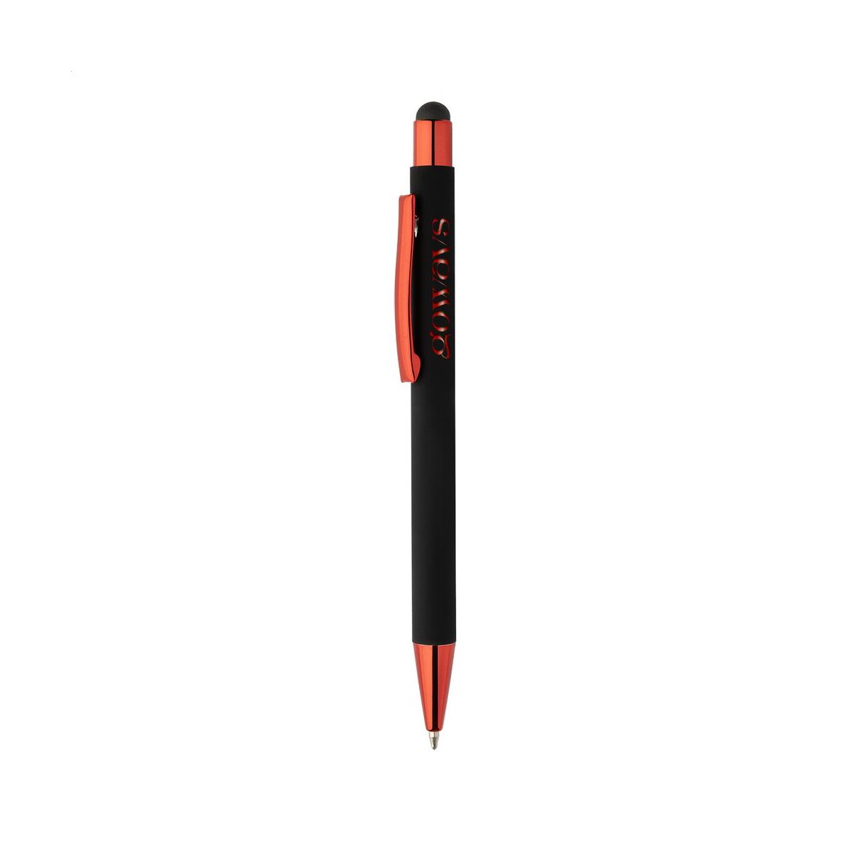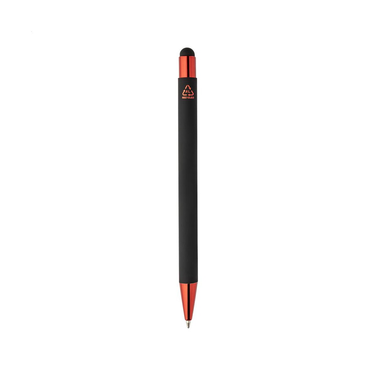 Darkly Tap długopis dotykowy łączy elegancję metalu z funkcjonalnością nowoczesnych technologii, tworząc doskonały gadżet 😊, który wyróżni się na każdym biurku. Aluminiowy korpus wykonany z materiału z recyklingu jest pokryty czarną, przyjemną w dotyku powłoką gumowaną, a połyskujące złote, srebrne, zielone, czerwone, niebieskie i jasnoróżowe akcenty dodają mu luksusowego charakteru. Dzięki specjalnej powłoce przeznaczonej do grawerowania lustrzanego Twoje logo zabłyśnie w identycznym odcieniu co metalowe detale, tworząc spójny i efektowny przekaz reklamowy.