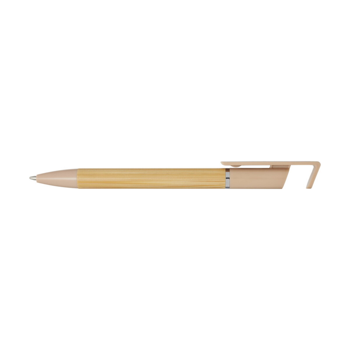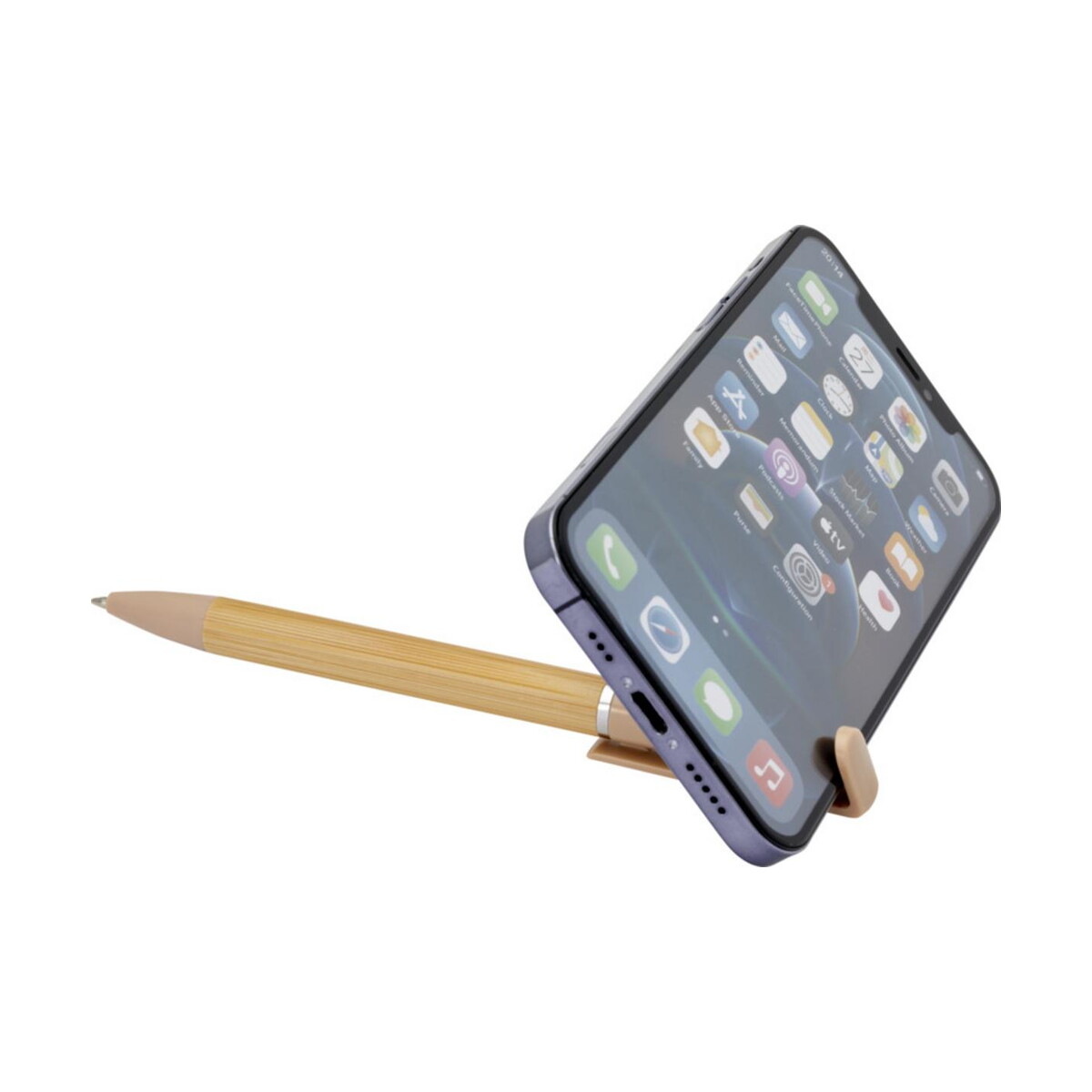 Delfina długopis z uchwytem na telefon to wielofunkcyjny gadżet stworzony z myślą o tych, którzy chcą połączyć ekologię z wygodą użytkowania 📱. Korpus wykonany z FSC certified bambusa podkreśla zrównoważone podejście marki, a przycisk oraz pierścień z plastiku z recyklingu i mosiężna końcówka dodają trwałości. Dzięki długości 14,7 cm, średnicy 1 cm i wadze zaledwie 9,5 g znakomicie leży w dłoni, a dodatkowa funkcja uchwytu pozwala komfortowo oglądać filmy lub prowadzić wideorozmowy. Kolor czarnego tuszu i żywotność na 1000 m pisania czynią go praktycznym na co dzień.