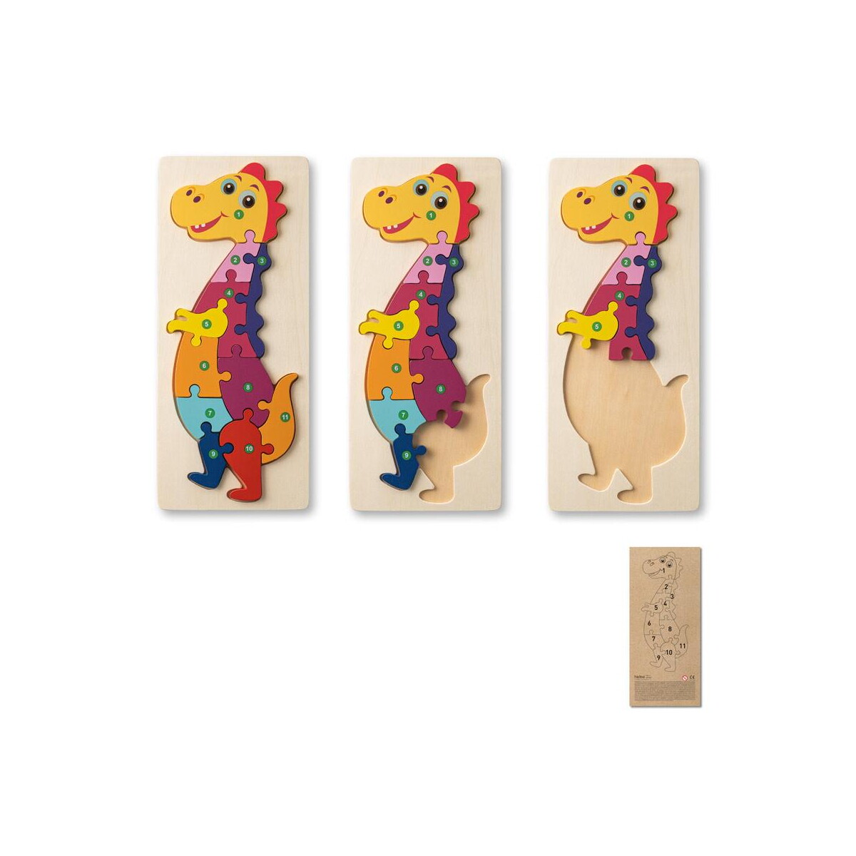 DIPLODOCO. Puzzle w kształcie dinozaura ze sklejki sosnowej to unikalny, trójwymiarowy gadżet, który zachwyci każdego miłośnika prehistorycznych stworzeń oraz wszystkie firmy szukające nietuzinkowych prezentów z charakterem 🦕. Składa się z numerowanych elementów, dzięki czemu samodzielne złożenie jest proste i angażujące – również dla dzieci. Podstawa z tej samej sklejki posiada miejsce na personalizację, gdzie możemy umieścić Twoje logo lub efektowny nadruk. To czyni ten produkt znakomitym upominkiem reklamowym, który na długo zapadnie w pamięć odbiorcy.