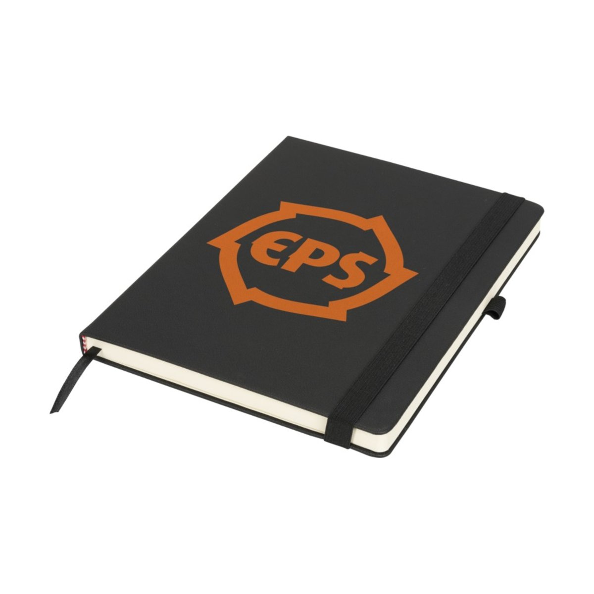 Notes dostępny jest w dwóch klasycznych wersjach kolorystycznych – czarnej oraz niebieskiej – co pozwala dopasować go do identyfikacji wizualnej Twojej marki. Solidne zamknięcie na gumkę chroni notatki, pętelka na długopis zawsze trzyma przyborów do pisania pod ręką, a wstążkowa zakładka ułatwia szybkie odnalezienie ostatniego wpisu. Na wewnętrznej stronie tylnej okładki znajdziesz praktyczną kieszeń na dokumenty, wizytówki czy luźne notatki.