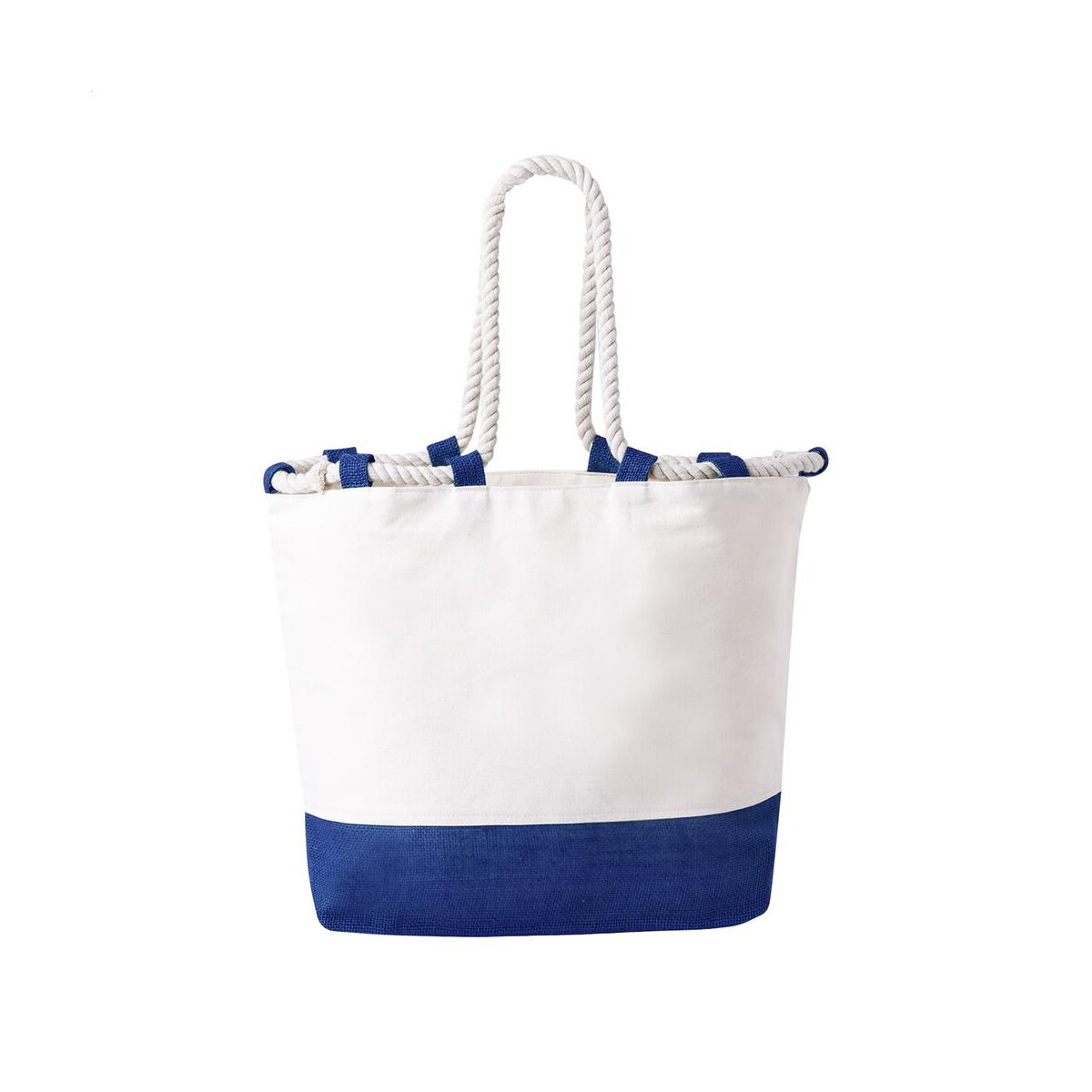 Entalu torba na plażę to przepiękne połączenie naturalnej juty i bawełny, które tworzy gadżet promocyjny o wyjątkowym charakterze 😊. Jej płócienne, dwukolorowe płaty w odcieniach ciemnoniebieskiego i naturalnego przyciągają wzrok, a solidne uchwyty z plecionego sznurka gwarantują komfort noszenia nawet przy pełnym obciążeniu. Dzięki gramaturze 280 g/m² materiał jest wytrzymały, a jednocześnie pozostaje przyjemny w dotyku – to rozwiązanie doskonałe, gdy potrzebujesz akcesorium, które będzie służyć przez niejeden sezon plażowy.
