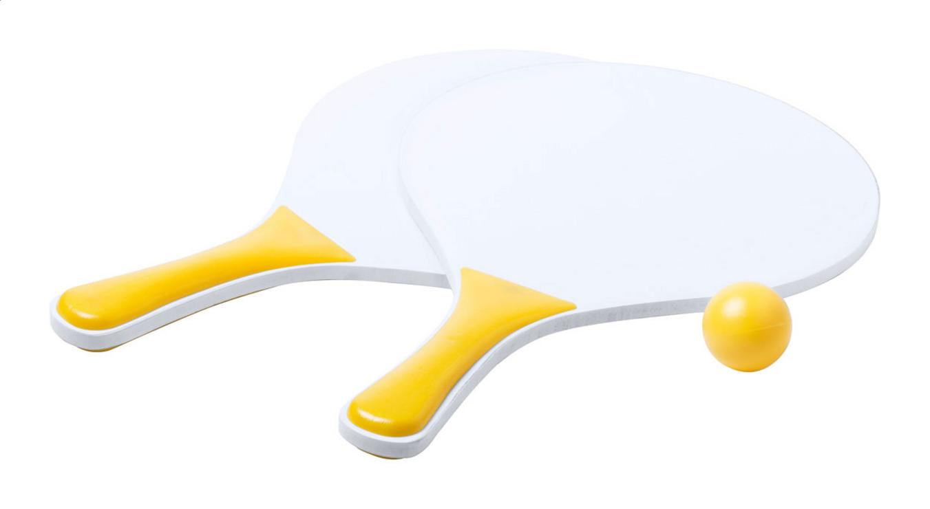 Evira tenis plażowy to wyśmienite, wakacyjne rozwiązanie łączące sportową pasję z promocją marki. Zestaw składa się z 2 dużych rakiet i jednej piłki, wykonanych z połączenia drewna i plastiku, dzięki czemu jest jednocześnie lekki i odporny na uszkodzenia. Jego wymiary 235×380×8 mm oraz waga 550 g pozwalają wygodnie spakować go do torby plażowej, a żywe kolory – zielony, biały, żółty oraz niebieski – przyciągną uwagę przechodniów na każdej plaży 🌞.