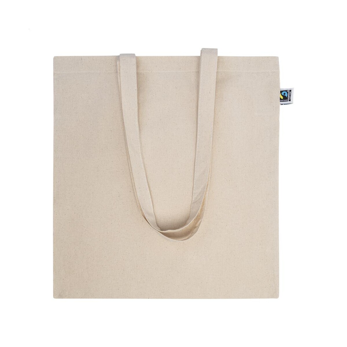 Długie uchwyty pozwalają wygodnie nosić nawet cięższe zakupy na ramieniu, a charakterystyczna metka Fairtrade podkreśla etyczne pochodzenie produktu. Taki gadżet sprawdzi się w kampaniach firm z branży ekologicznej, spożywczej, beauty, a także w sektorze edukacyjnym i kulturalnym – wszędzie tam, gdzie zrównoważony rozwój i odpowiedzialność społeczna mają znaczenie. To produkt wyjątkowo przyjazny środowisku, dzięki czemu świetnie wpisuje się w strategie CSR dla Twojej firmy.
