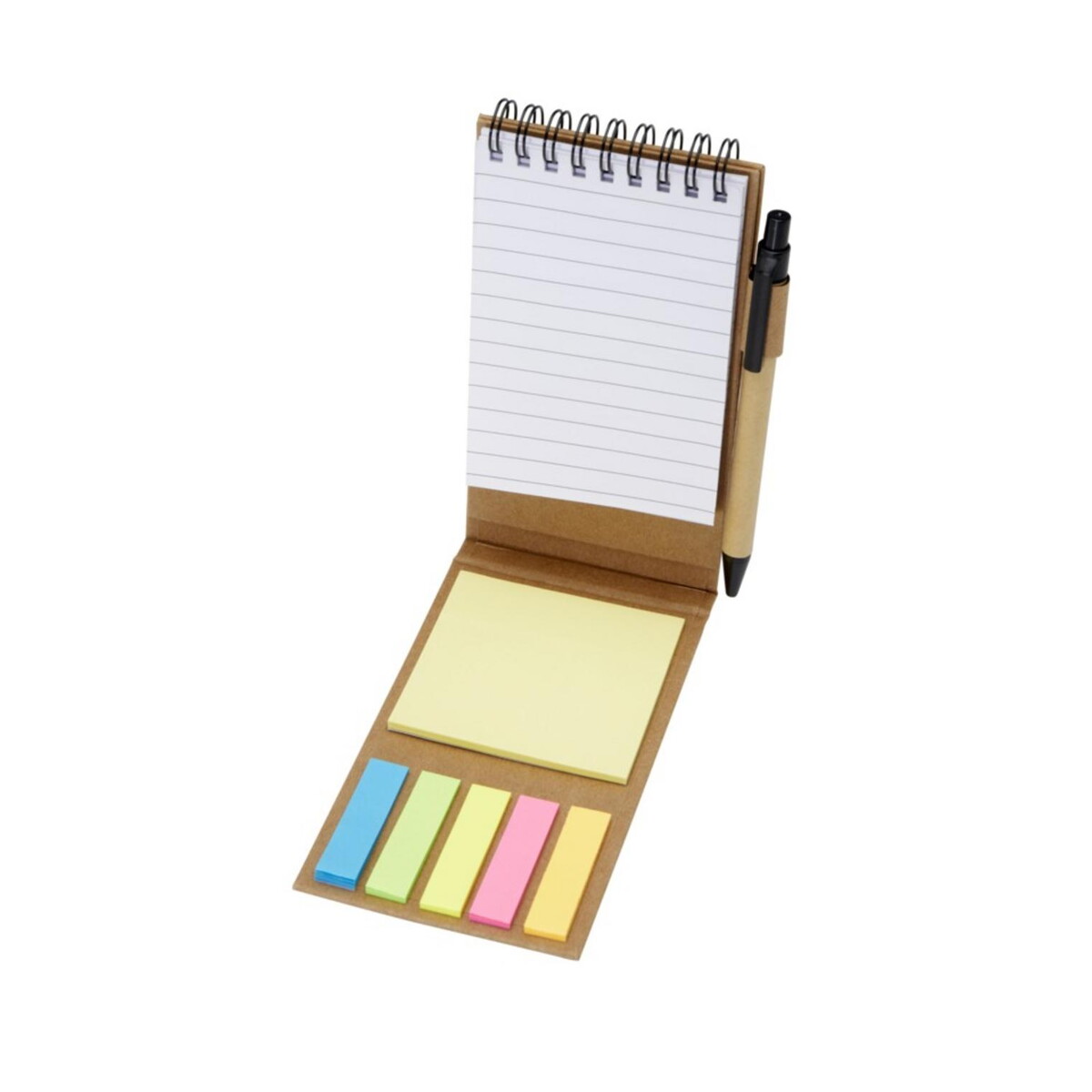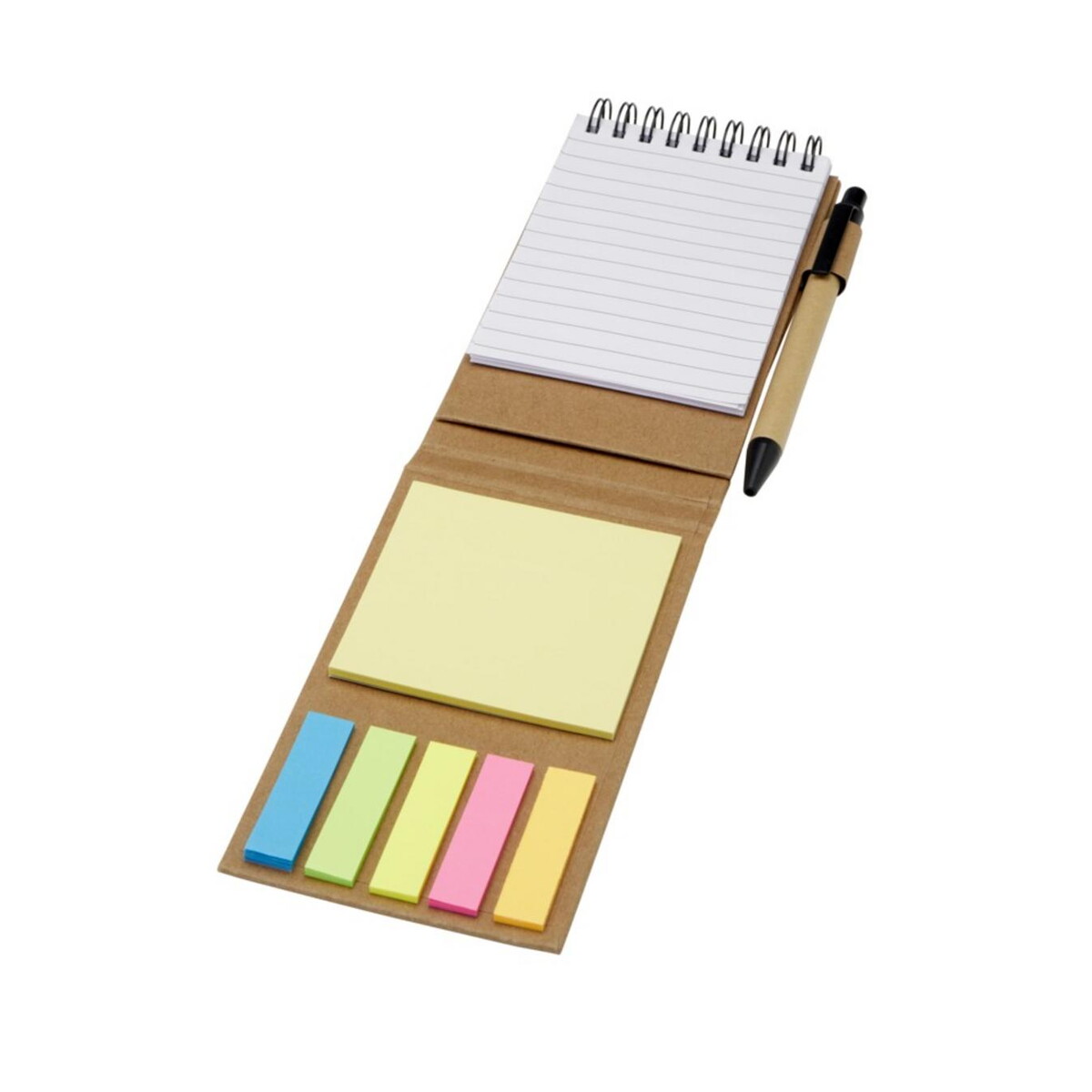Ten produkt aż prosi się o personalizację logo! Dzięki dużej powierzchni okładki i długopisu znakowanie nadrukem UV lub tampodrukiem jest szybkie i efektowne. W rezultacie otrzymujesz funkcjonalny nośnik reklamowy, który codziennie przypomina użytkownikowi o Twojej marce. Sprawdzi się w promocji branż edukacyjnych, kreatywnych, finansowych, logistycznych czy nawet medycznych – wszędzie tam, gdzie liczy się szybka notatka lub kolorowa zakładka.
