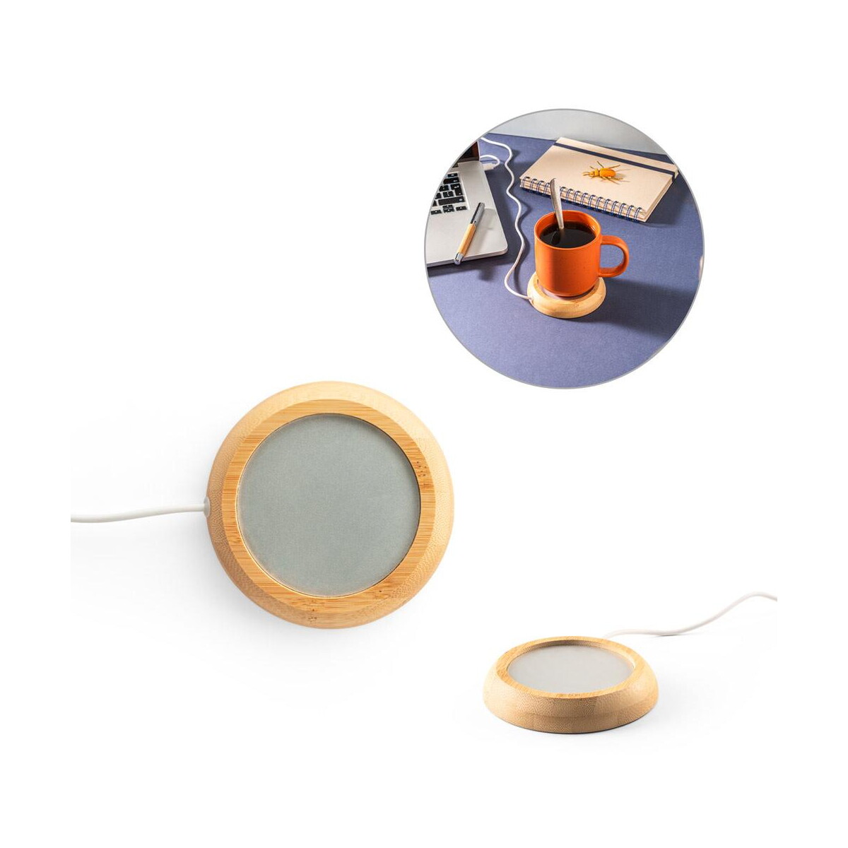 GATES. Podgrzewacz do kubków z bambusowym korpusem to niezrównany gadżet, który zmienia każdy łyk kawy lub herbaty w prawdziwą przyjemność ☕. Wykonany z naturalnego bambusa, z elegancką metaliczną powierzchnią i antypoślizgową podstawą, prezentuje się stylowo na biurku, w kuchni czy w strefie relaksu biura. Dzięki zakresowi grzania 50-60°C utrzymuje napój w perfekcyjnej temperaturze, niezależnie od tego, czy pracujesz zdalnie, prowadzisz spotkanie online czy delektujesz się chwilą w domowym zaciszu. Jego kompaktowe wymiary ø105 × 19 mm i waga 94 g sprawiają, że bez trudu zmieści się w każdej torbie na laptopa. Kabel USB-A o długości 90 cm zapewnia mobilność, a kompatybilność z kubkami o średnicy do 75 mm gwarantuje szerokie zastosowanie. 🎁