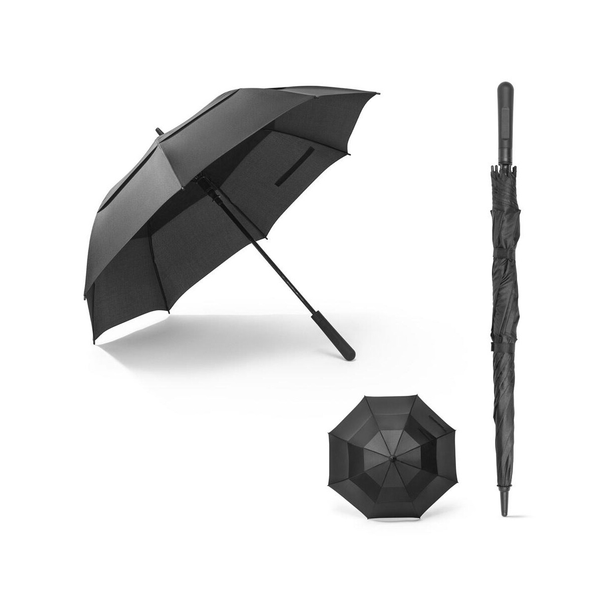 GAVIN. Parasol 27.5” z 190T pongee z automatycznym otwieraniem to znakomity, solidnie wykonany gadżet promocyjny, który dzięki swojej funkcjonalności i eleganckiej, głębokiej czerni przyciąga uwagę zarówno w mieście, jak i podczas wyjazdów biznesowych. Rozpiętość czaszy aż ø1224 mm oraz wysokość 940 mm gwarantują skuteczną ochronę przed deszczem, a masa 675 g sprawia, że parasol pewnie leży w dłoni. Konstrukcja z włókna szklanego, automatyczny mechanizm otwierania oraz cecha wiatroodporny zapewniają bezpieczeństwo użytkowania nawet w trudnych warunkach sztormowych 🌧️. Do kompletu dołączono etui o wymiarach ø83 × 763 mm, które ułatwia transport oraz przechowanie produktu, gdy nie jest używany.