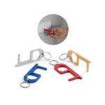 Aluminiowy brelok z otwieraczem do butelek. Dzięki swojej konstrukcji może służyć do otwierania drzwi, a jego końcówka pozwala na użycie przycisków, np. w bankomacie czy windzie