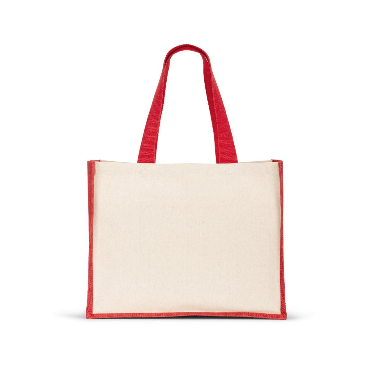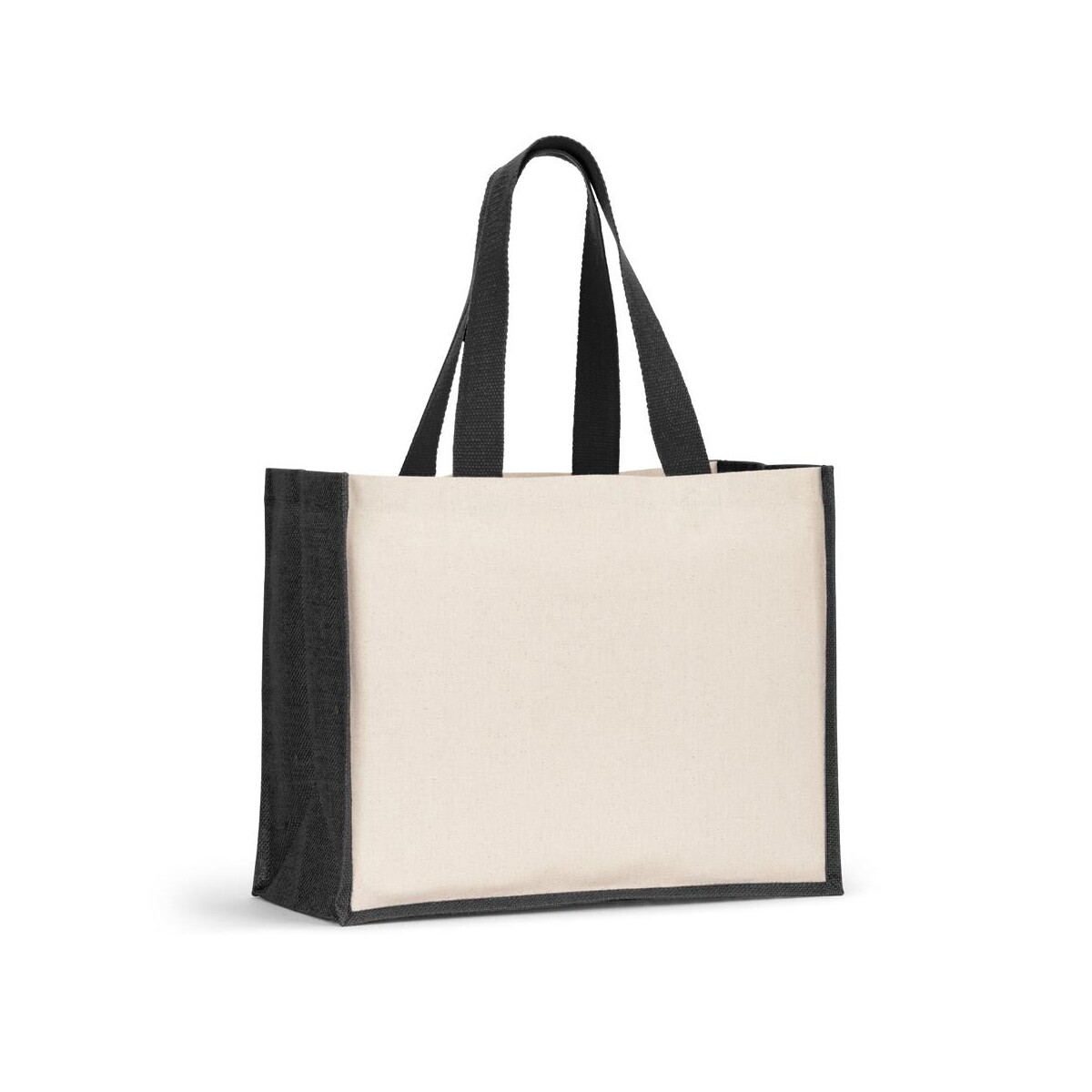 HELSINQUE COLOUR. Torba płócienna (320 g/m²), z dnem i bokami z laminowanej juty (350 g/m²) będzie gadżetem doskonałym dla firm z branży spożywczej, eko-kosmetycznej, modowej, księgarskiej czy eventowej. Świetnie sprawdzi się w kampanii promującej zdrową żywność, targi zero waste czy premierę kolekcji odzieżowej. Dzięki dużej powierzchni 420 x 330 mm Twoje logo może zostać naniesione techniką sitodruku lub termo-transferu, tworząc trwały nadruk, który zamieni torbę w mobilny bilbord reklamowy. Ta wytrzymała mieszanka bawełny i juty gwarantuje długą żywotność, co czyni ją inwestycją o wysokim zwrocie reklamowym.