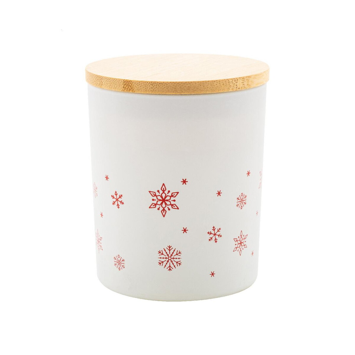 Jouluz Świeca bożonarodzeniowa, wanilia to świąteczny gadżet, który wprowadzi magiczny nastrój do każdego wnętrza i jednocześnie stanie się subtelnym nośnikiem logo Twojej marki 🎄. W matowym szkle ozdobionym charakterystycznym płatkiem śniegu kryje się 120 g roślinnego wosku o słodko-korzennym aromacie wanilii, a eleganckie bambusowe wieczko podkreśla ekologiczny charakter produktu. Kompaktowy format ø70×85 mm i waga 337,5 g sprawiają, że świeca zmieści się na każdym biurku czy stoliku kawowym, stając się stylowym akcentem świątecznym ⭐.