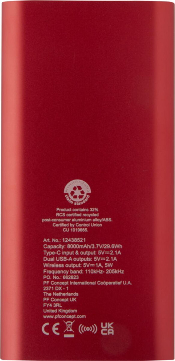Juice bezprzewodowy powerbank o pojemności 8000 mAh Type-C z aluminium pochodzącego z recyklingu