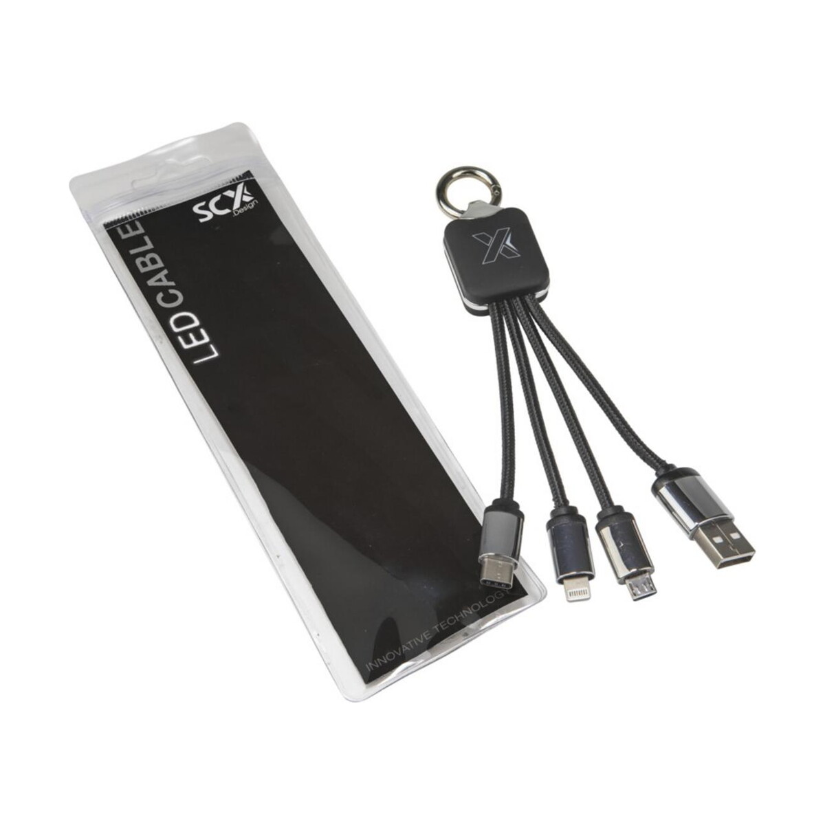 Kabel z podświetlonym logo 3w1 z brelokiem – SCX.design C15