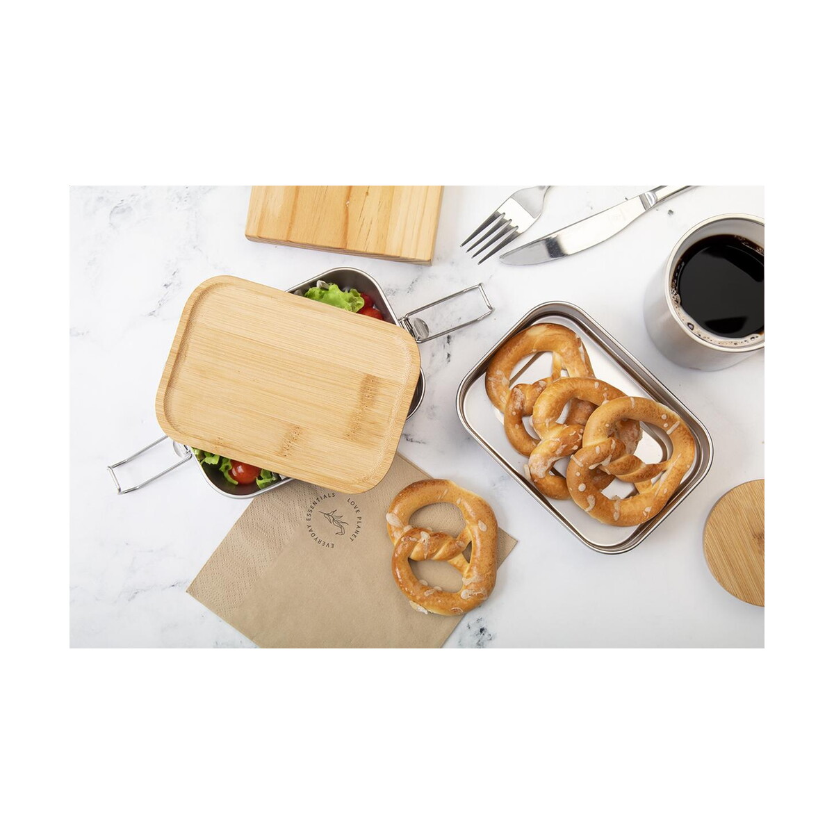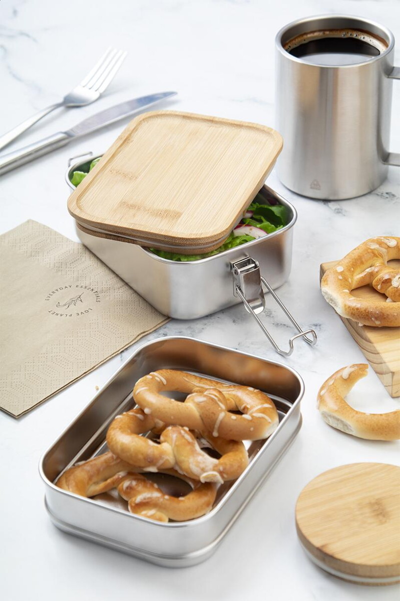 Kotetsu pudełko na lunch to znakomity sposób, by wyróżnić się podczas przerwy obiadowej oraz zaprezentować logo swojej marki w stylu eko. Wykonane z stal nierdzewna z recyklingu, zamknięte elegancką bambusowa pokrywka i zabezpieczone bezpieczne zamknięcie na klamrę, staje się praktycznym i trwałym kompanem zarówno w pracy, jak i w podróży. W środku znajdują się dwie przegródki 340 i 600 ml, dzięki którym łatwo oddzielisz sałatkę od dania głównego lub porcję tabletek od przekąsek. To nie tylko lunchbox – w kategorii Pojemniki na tabletki z logo świetnie sprawdzi się też jako organizer na suplementy diety. 🙂