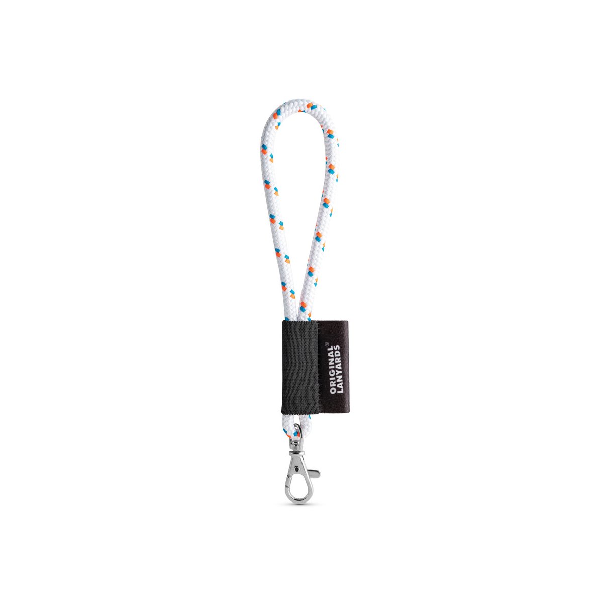 Personalizowana smycz Original Lanyards® krótka nautic, wykonana z poliestru, w 12 standardowych kolorach dostępnych do personalizacji. Zawiera następujące akcesoria i dodatki: czarna gumka, Etykieta sublimacyjna 43 x 15 mm i mały karabińczyk 9 mm