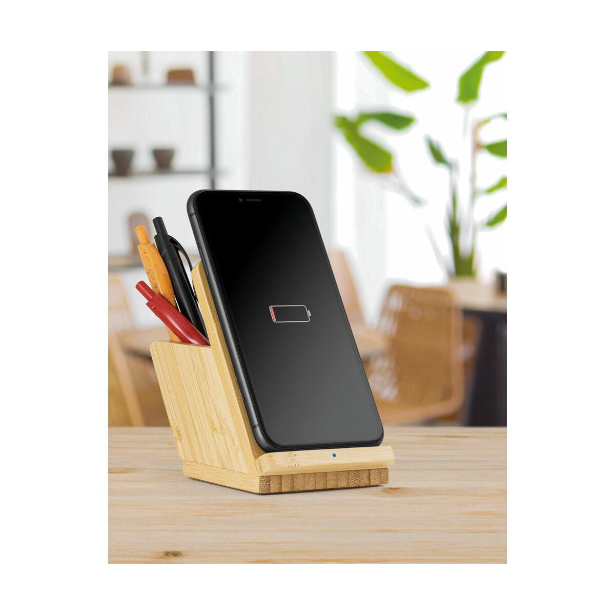 Ten ekologiczny, a zarazem nowatorski przedmiot będzie doskonały dla menedżerów, handlowców, studentów i nauczycieli, ale też dla przedstawicieli handlowych, którzy potrzebują schludnego miejsca na telefon podczas wideokonferencji oraz szybkiego doładowania baterii. Idealnie sprawdzi się podczas targów i konferencji jako praktyczny prezent reklamowy; w biurze zapewni porządek na biurku, a w domu posłuży jako stabilna podstawka do oglądania filmów czy rozmów wideo 🔋.
