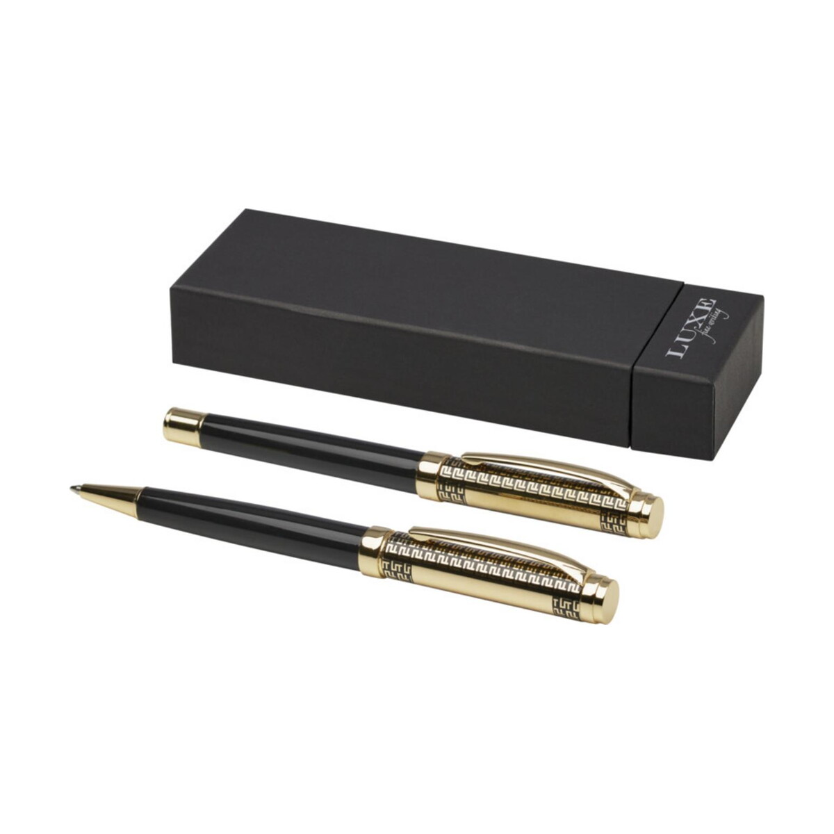 Legato zestaw z długopisem i piórem kulkowym to elegancki, a zarazem wytrzymały gadżet, który podniesie prestiż każdej kampanii promocyjnej. Zarówno pióro, jak i długopis wykonano z mosiądzu pochodzącego z recyklingu, co podkreśla troskę o środowisko oraz nowoczesne podejście dla Twojej firmy. Złote, chromowane wykończenia oraz charakterystyczne logo LUXE na środkowym pierścieniu nadają całości luksusowego charakteru 🙂. Górna część korpusu w kolorze żółtym doskonale kontrastuje z dolną czernią wykończoną natryskowo, a smukła średnica 1,2 cm i długość 14,1 cm czynią zestaw niezwykle poręcznym i ergonomicznym.