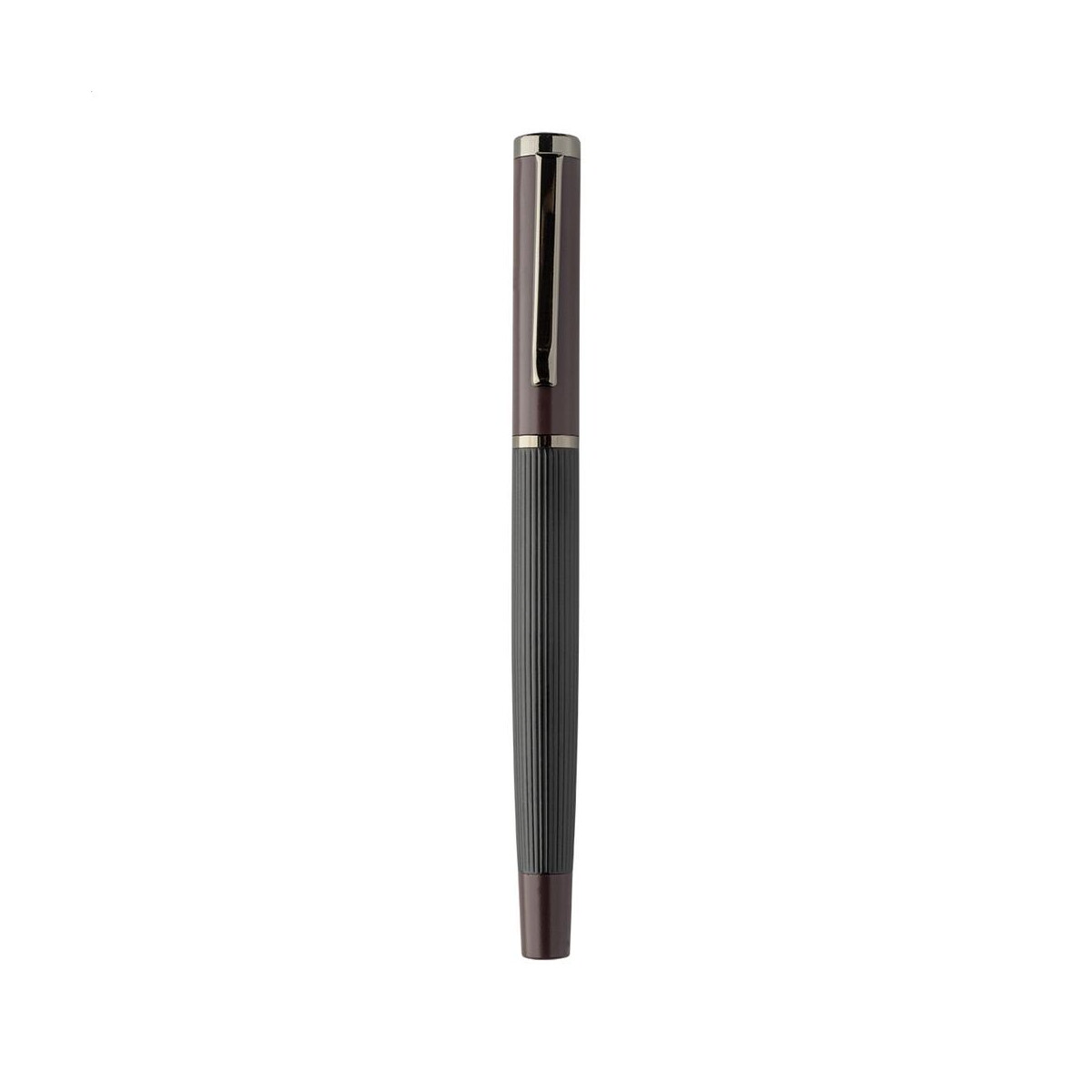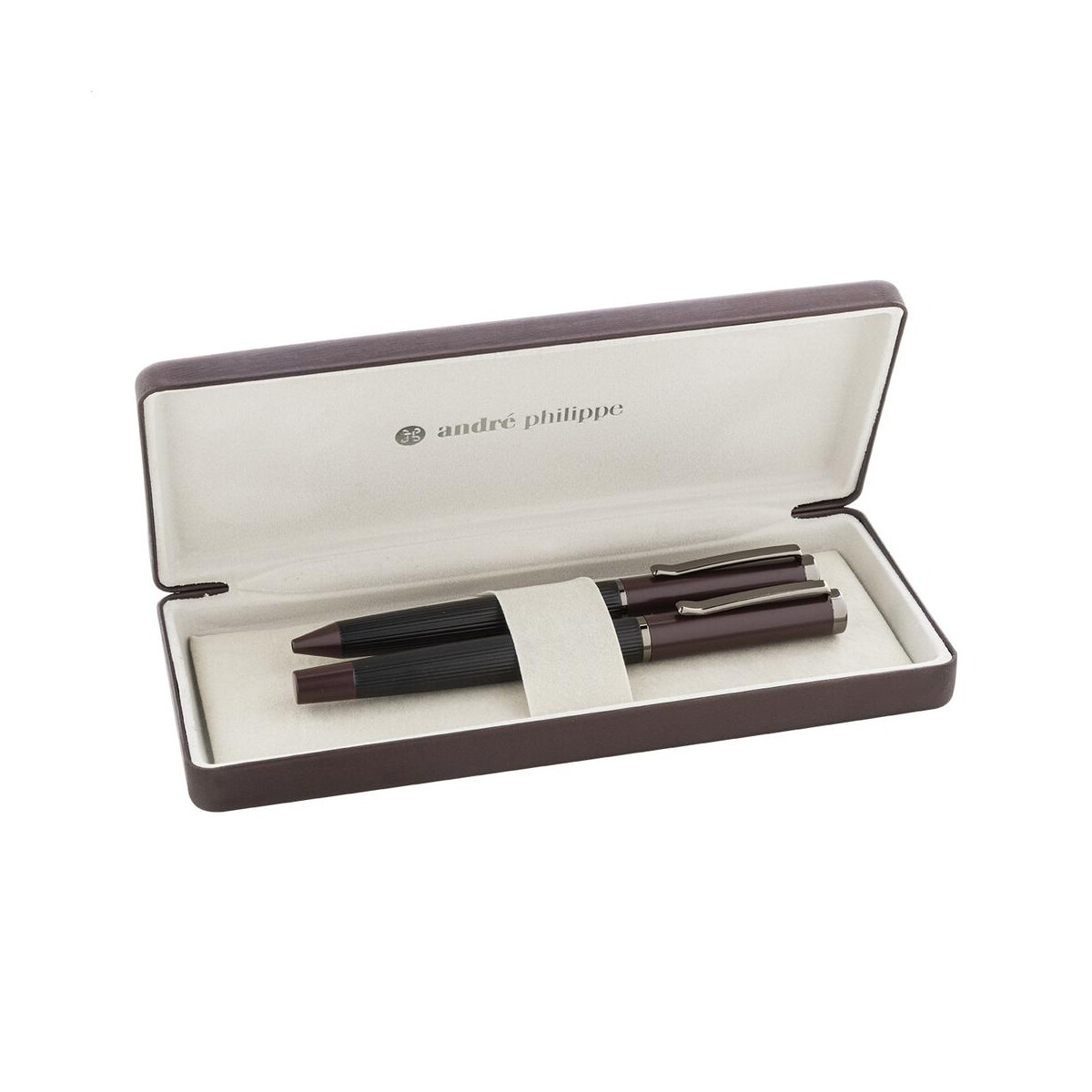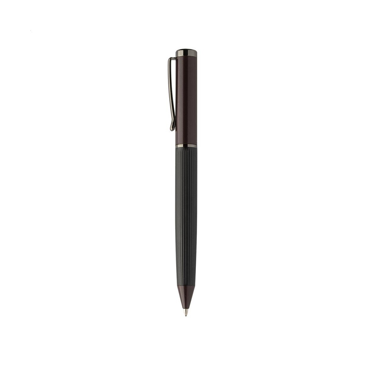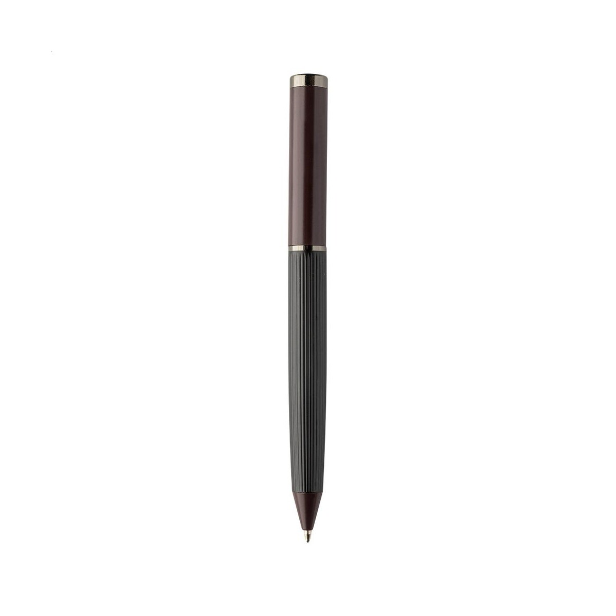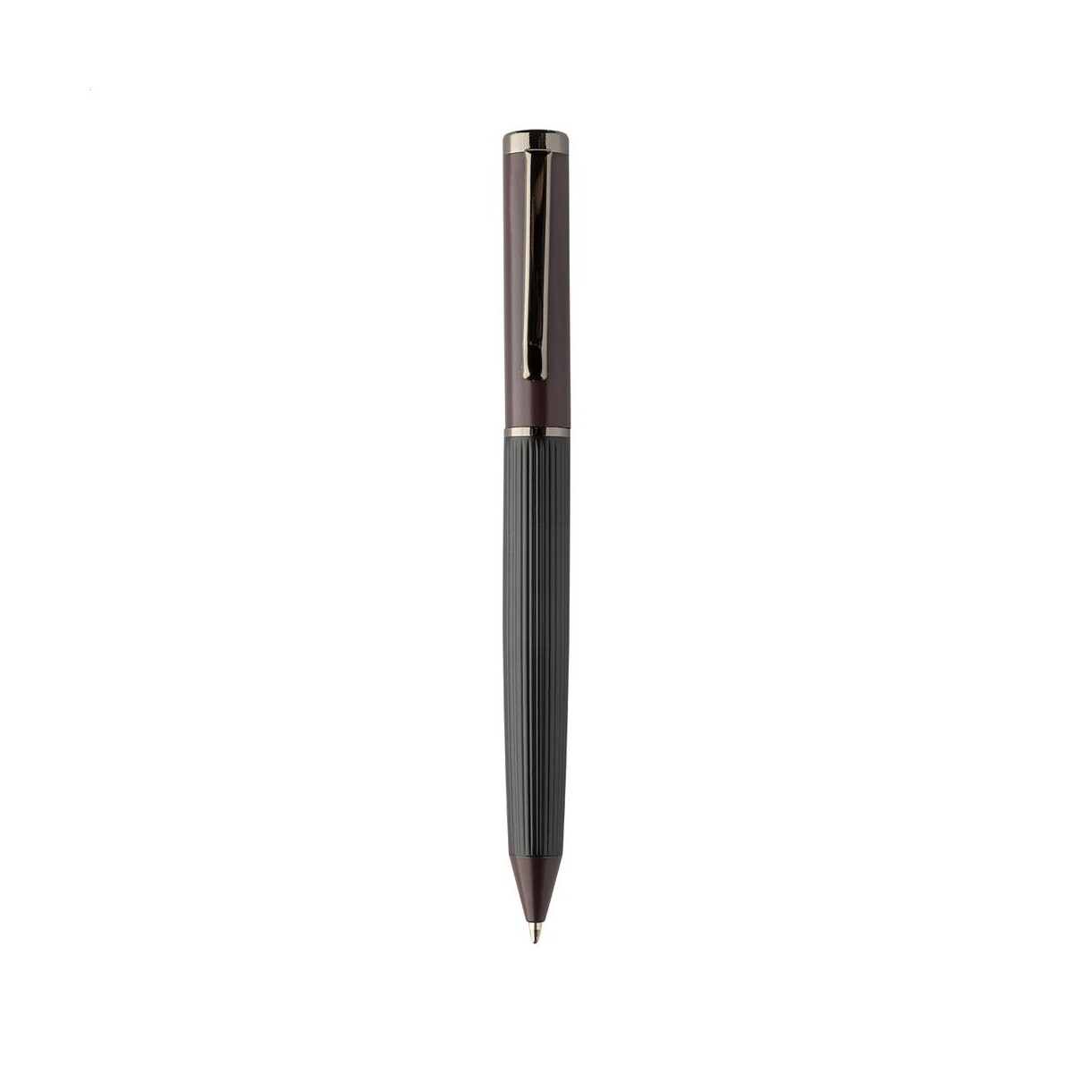 Macaye zestaw piśmienniczy to prawdziwa wizytówka elegancji i funkcjonalności, którą z dumą wręczysz kontrahentom lub pracownikom 🙂. Składa się z długopisu i pióra kulkowego o metalowym, prążkowanym korpusie, wzbogaconym kolorowymi akcentami w odcieniach niebieskim, bordowym lub zielonym. Całość dopełniają błyszczące, metalowe detale, które nadają prestiżowego charakteru, a pasujące kolorystycznie pudełko prezentowe z niebieskim wkładem sprawia, że zestaw jest gotowy do wręczenia od razu po rozpakowaniu.