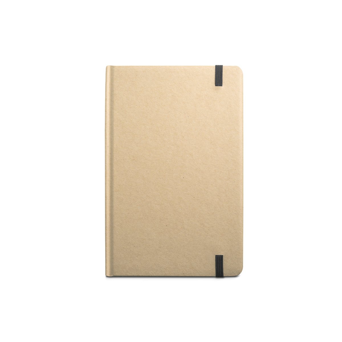 Notes A5 ze 160 stronami w linie z papieru makulaturowego i twardą okładką z kartonu. Zawiera zakładkę z tasiemki oraz gumkę w pasującym kolorze