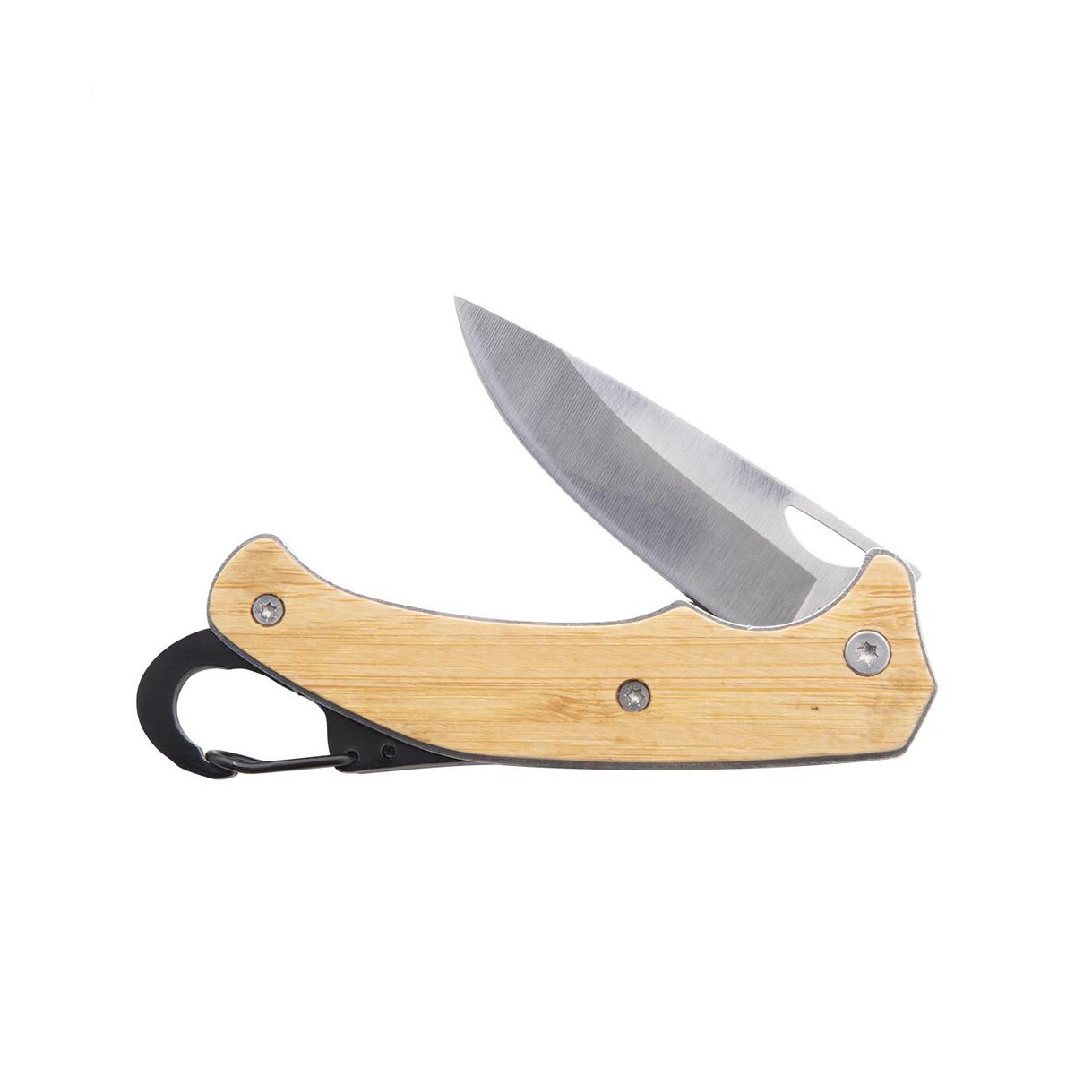 Ten nóż kieszonkowy posiada blokadę bezpieczeństwa, która zabezpiecza ostrze podczas pracy, gwarantując komfort i pewność chwytu. Naturalny kolor bambusa tworzy świetne tło pod wyeksponowanie Twojego logo lub spersonalizowanego nadruku. W efekcie Mears Scyzoryk staje się wyjątkowym upominkiem reklamowym, który podkreśli ekologiczne wartości marki i zadba o jej rozpoznawalność.