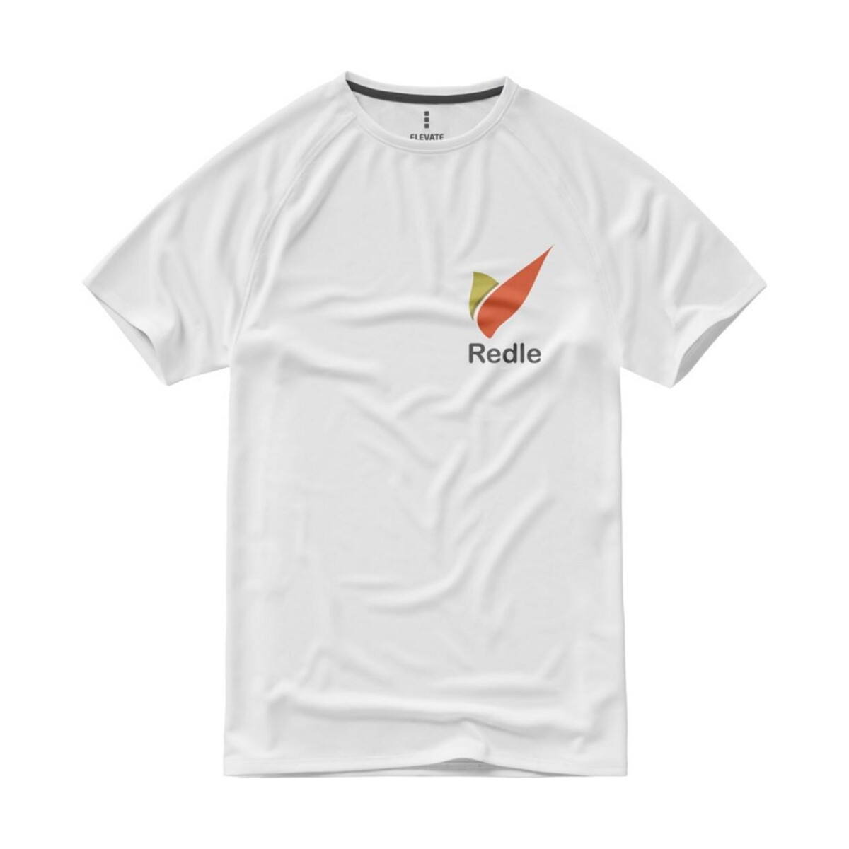 Męski T-shirt Niagara z krótkim rękawem z dzianiny Cool Fit odprowadzającej wilgoć sprawdzi się w kampaniach dla branży sportowej, fitness, outdoor, eventowej, a także technologicznej, gdzie aktywny styl życia to część DNA marki. Dzięki dużej, gładkiej powierzchni z siateczkowego splotu jest świetny pod nadruk lub logo, tworząc wyjątkowy nośnik przekazu reklamowego. To perfekcyjny gadżet firmowy dla trenerów personalnych, uczestników firmowych biegów, ekip rowerowych, ale też dla zespołów na targach czy piknikach integracyjnych 💪.