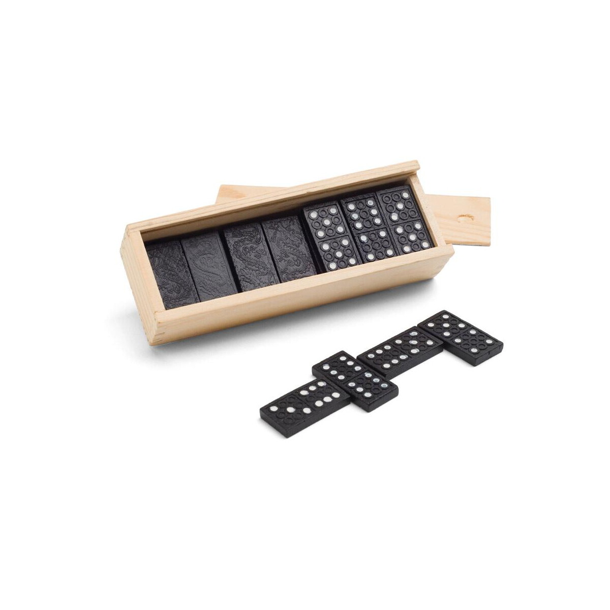 MIGUEL. Gra Domino w drewnianym pudełku z pokrywką to znakomity sposób, by połączyć rozrywkę z promocją marki. Eleganckie pudełko z drewna (wymiary 146 x 50 x 30 mm, waga 116 g) skrywa klasyczne kostki w kolorze czarnym z białymi wytłoczeniami – całość prezentuje się niezwykle stylowo 😊. Ponieważ każdy egzemplarz powstaje z naturalnych materiałów, odcień drewna oraz efekt nadruku mogą subtelnie się różnić, co podkreśla unikalny charakter produktu.
