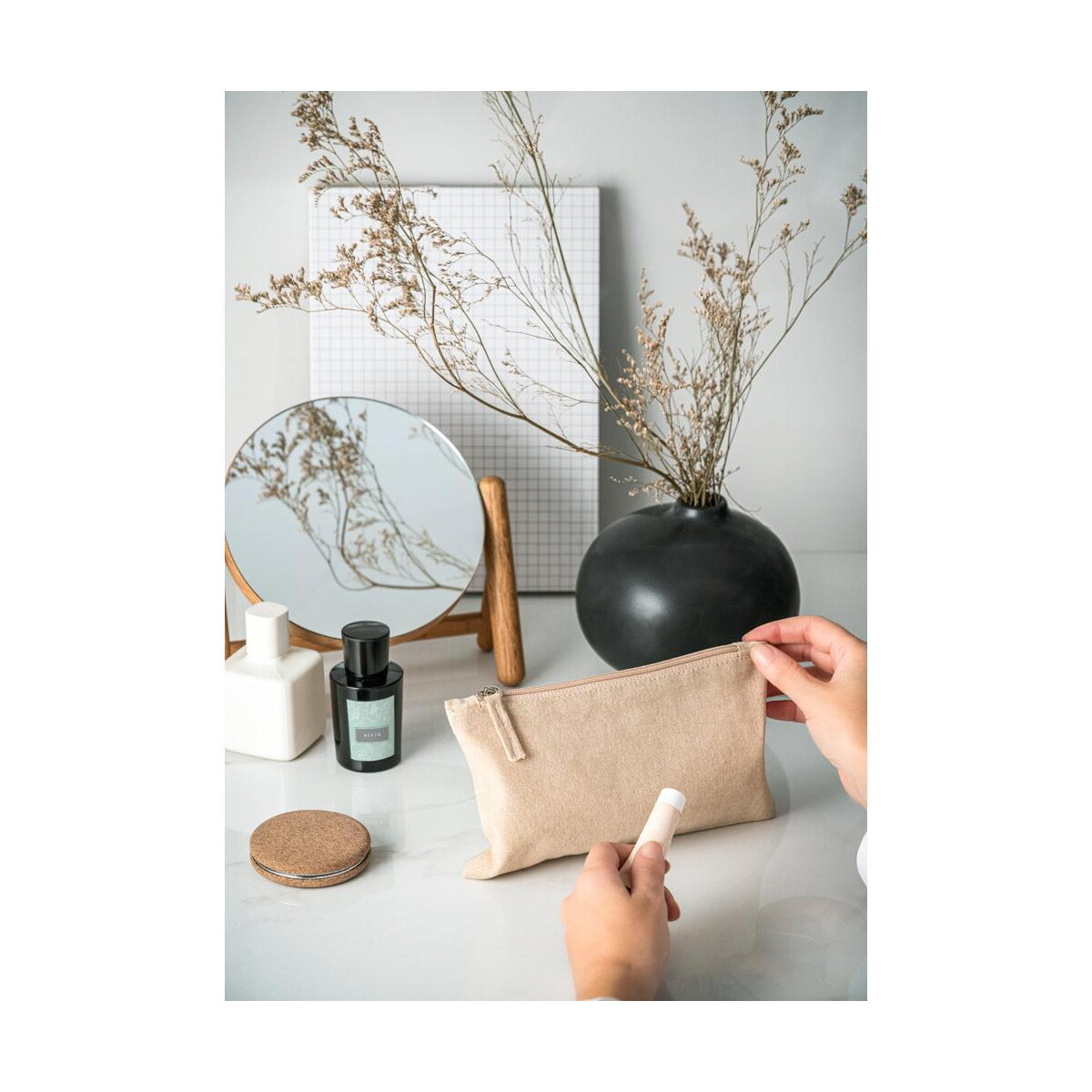 Drugie życie plastikowych butelek połączone z naturalnym włóknem to praktyczny manifest odpowiedzialności środowiskowej. Nic dziwnego, że MILLIE. Etui wielofunkcyjna bawełnę pochodzącą (70% rPET) z poliester z recyklingu (30%) (140 g/m²) cieszy się zainteresowaniem firm z branży beauty, eko-fashion, SPA, a także start-upów zero waste. Na jego płaskiej powierzchni z łatwością umieścisz wyrazisty nadruk lub logo, dzięki czemu stanie się funkcjonalnym nośnikiem przekazu reklamowego.